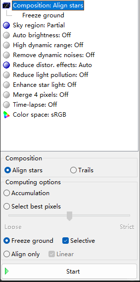 堆栈的目的是为了保证单张照片的噪声水平,也就是提高信噪比,在单张曝光时长有限的情况下,这一过程就显得尤为重要。对于深空佬来说就太熟悉了,只不过我们犯不着用Pi来处理它们,使用Sequator可以做到简单高效,同时还可以处理地景部分的信息,之外还支持做简单的图像校准,只不过一般情况下我们没必要去做,这里也是只介绍最简单快捷的处理过程。