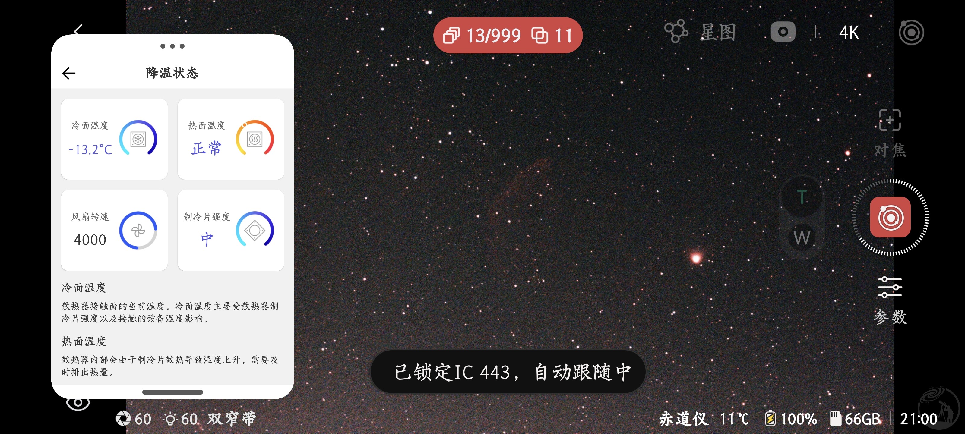 在气温15度环境下,不使用制冷会去到30度,如果进行制冷那么可以降低到11度-8度,同时还可以建立暗场库、偏置场库,免得每次都要重复拍了!