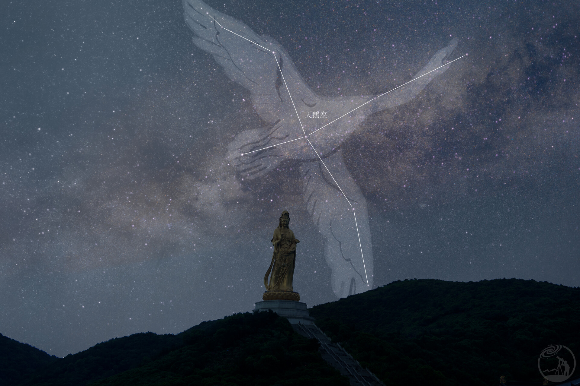 苏州西山岛,荒废的寺庙,停车场正好可以拍下观音菩萨像+天鹅座