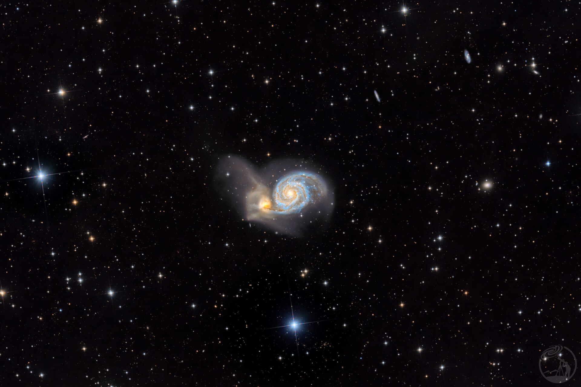 siril+topaz后期,采用两次反双曲正弦变换,不仅使得星系的色彩提升,而且星点也有了色彩了。
