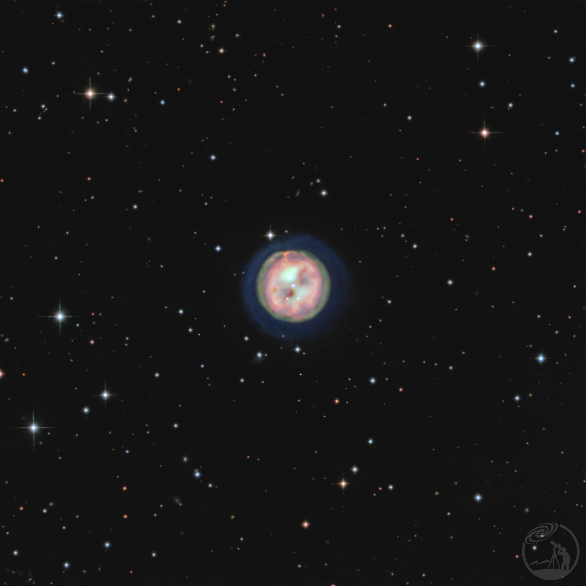 本作品展示了位于大熊座的M97行星状星云,即天文学中著名的猫头鹰星云(Owl Nebula,NGC 3587)。图像通过不同的数据处理方式,客观呈现了该天体的形态结构与辐射特征。