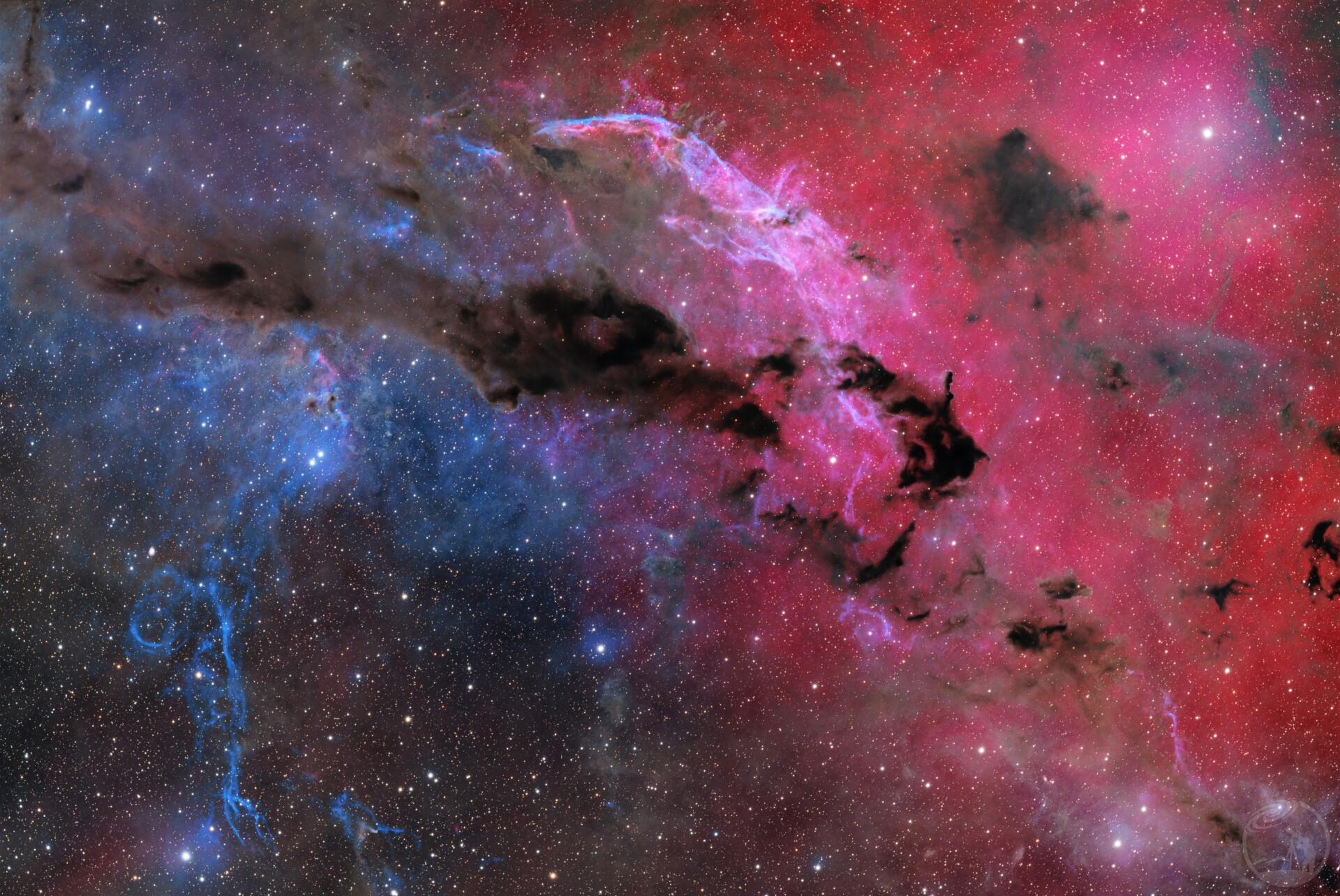 宇宙里的墨色绸带,在红与蓝的星云间勾勒出独有的暗美。