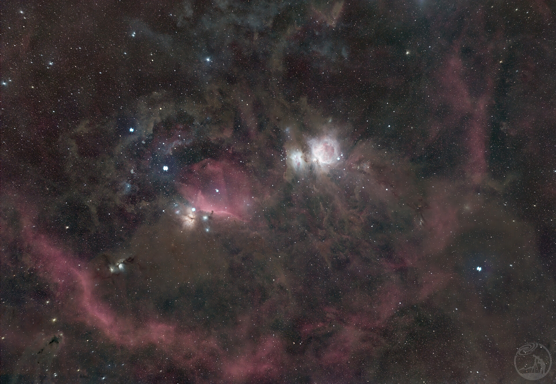 整理了一下前几个月用不同焦段拍的猎户,重新用pi修了一版,第一张是135mm搭配尼康相机所拍的广域,同时拍到了猎户,火树,m78以及巴环。第二张是用小黑搭配冷冻相机所拍,拍的猎户特写。第三张是15mm搭配尼康相机所拍。