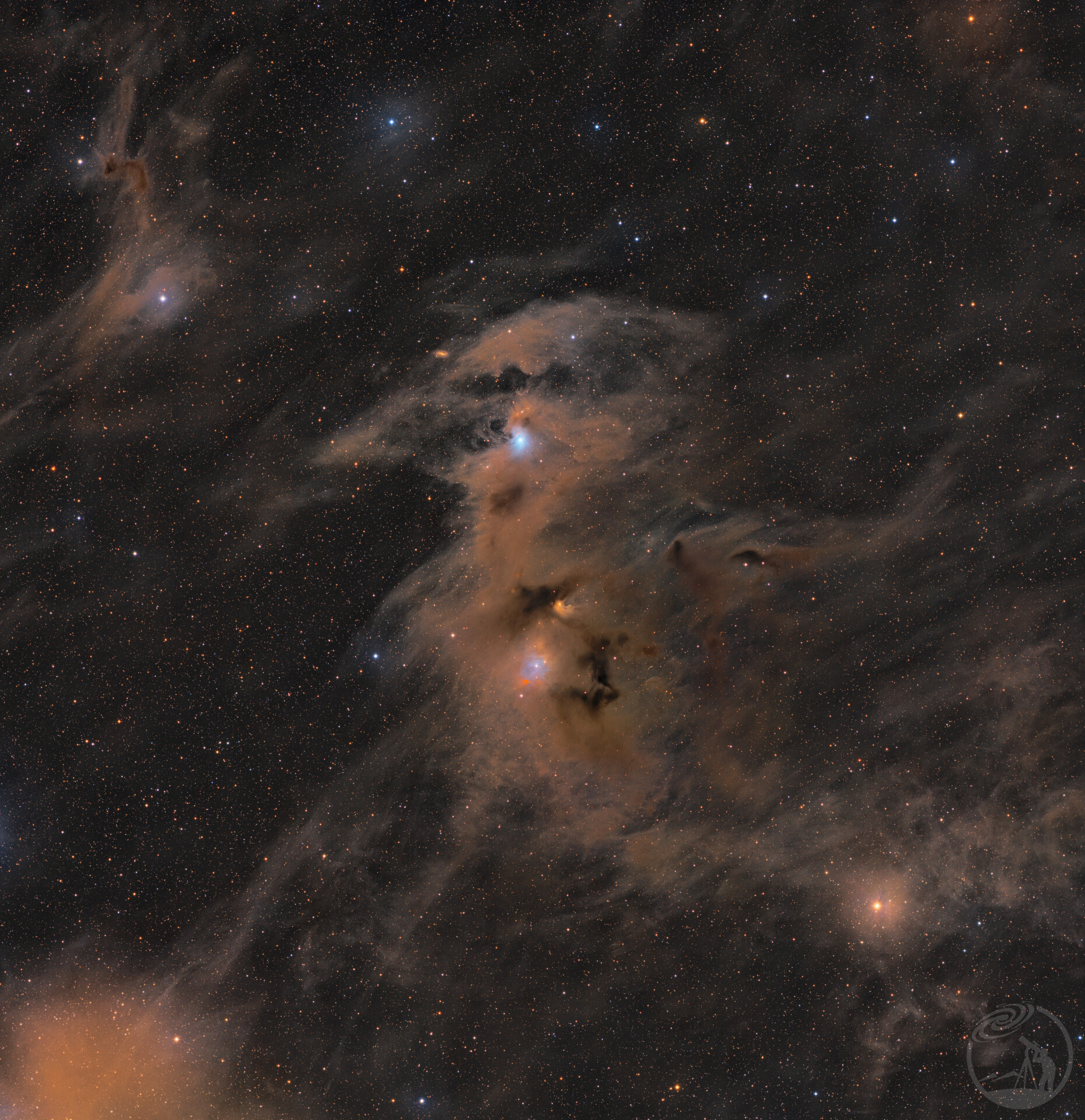 它由两片紧密相邻的暗星云组成,因遮挡背景星光而在光学影像中呈现为不透明的浓密尘埃带。该区域是低质量恒星形成的活跃场所,内部包含原恒星及赫比格-哈罗天体,是研究恒星早期演化的理想天然实验室。
