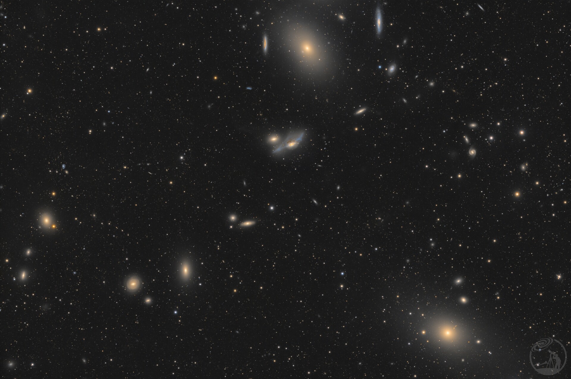 马卡良星系链是位于室女座星系团中的一串醒目的星系,由至少七个星系在引力作用下排列成一条直线,跨度超过100万光年。它们并非偶然对齐,而是通过引力相互作用连接在一起,是研究星系间潮汐作用和星系演化过程的天然实验室。其中部分星系显示出活跃的星系核特征,可能与中心超大质量黑洞的活动有关。