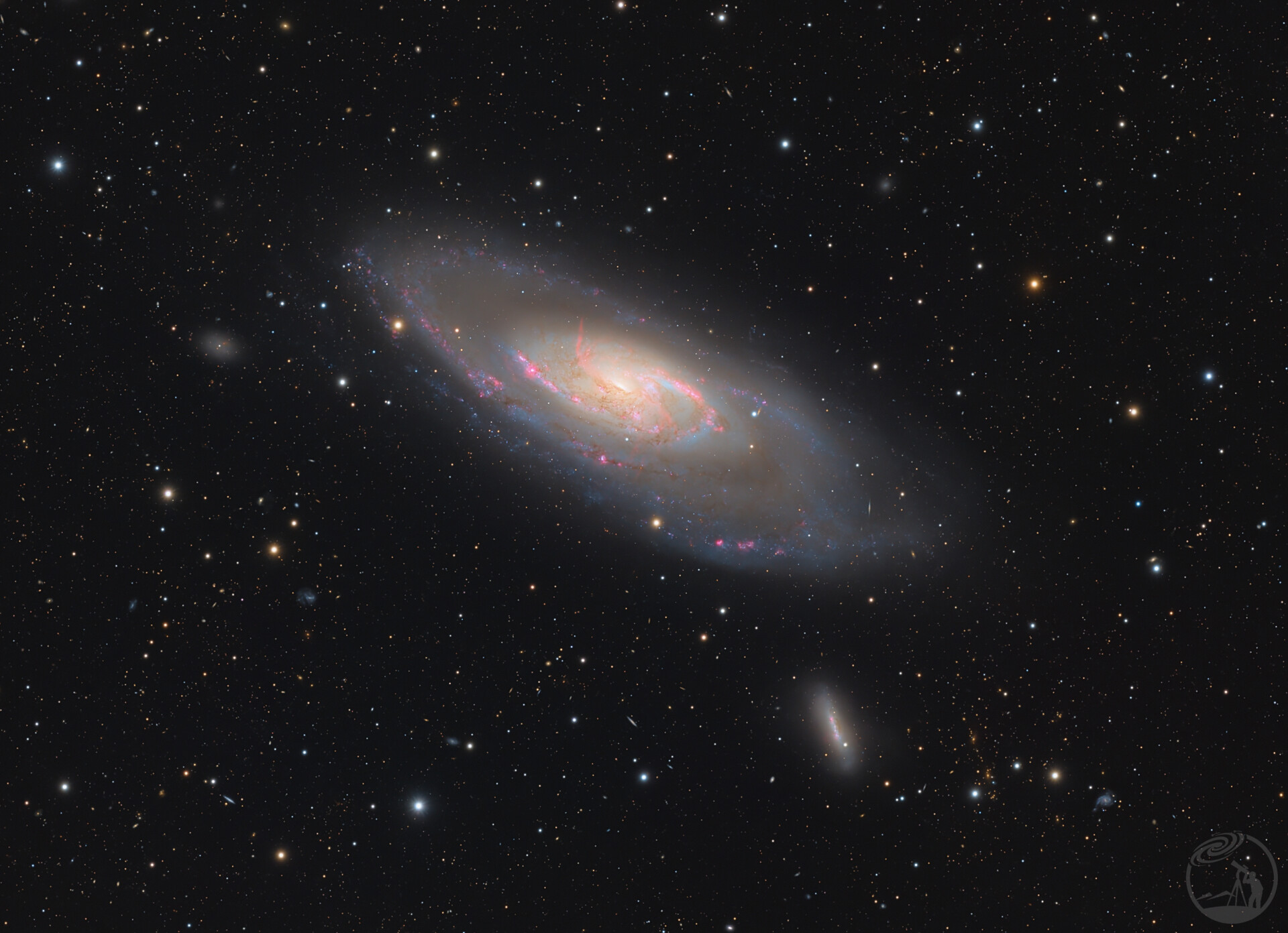 M106是位于猎犬座的一个明亮漩涡星系,距离地球约2400万光年。它拥有醒目的旋臂和活跃的星系核,其核心可能存在超大质量黑洞。M106最特别之处在于拥有两个额外的“神秘喷流”,在射电和X射线波段清晰可见,被认为与黑洞活动有关。