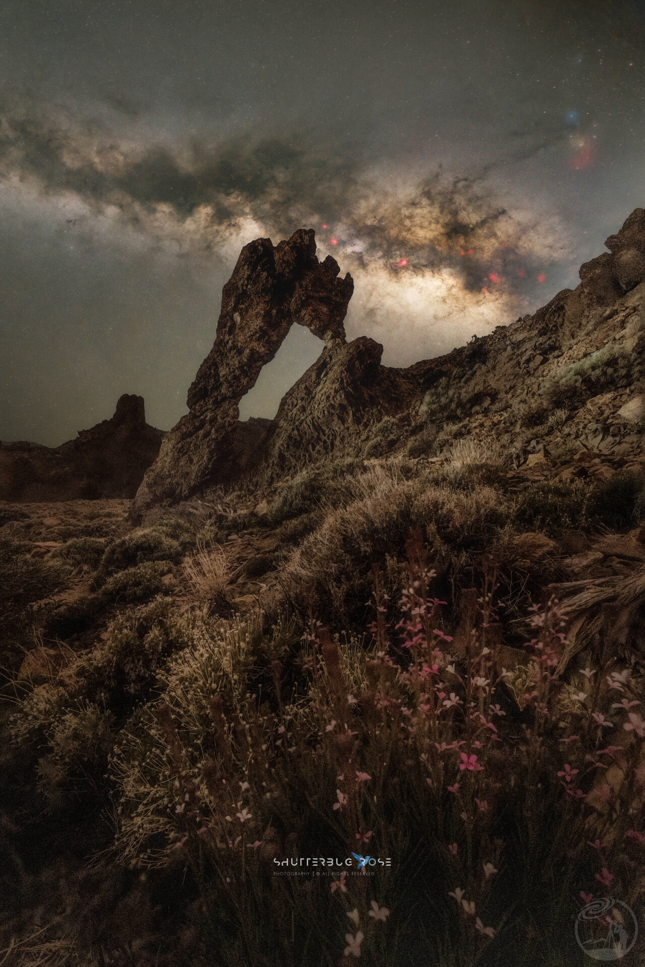 三月的Tenerife,要等到凌晨两点,银河才会从泰德峰的方向缓缓漫上来。我们在旁边火山石拱下静静等候,冒着被岛内城管罚款的风险…