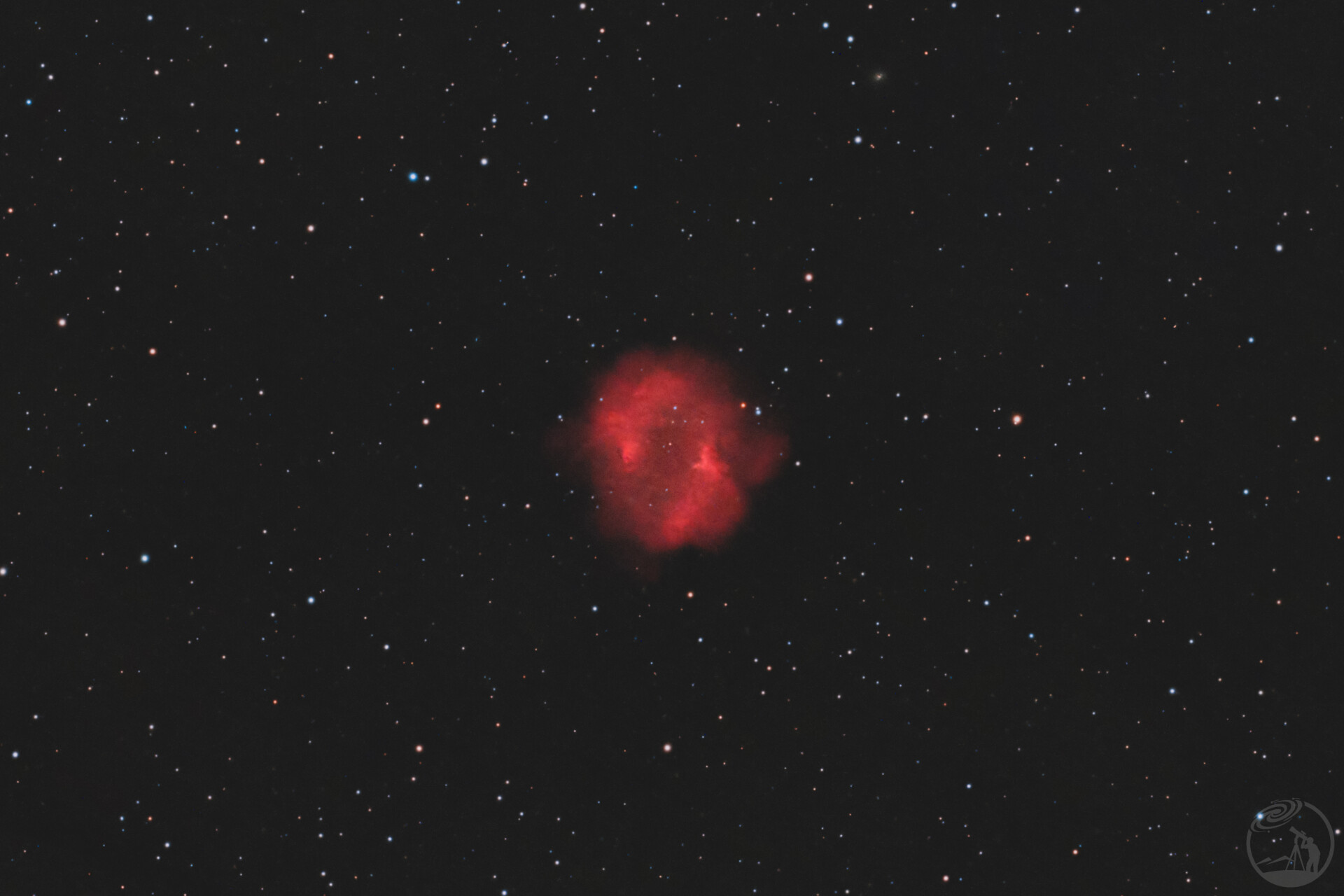 阿贝尔24(Abell24):是一个位于小犬座的古老行星状星云,在南河三东南方向约4-5°处 ,距离地球约2000光年,视直径约6角分,也称作PK 217+14.1。Abell24呈现出不规则的弥漫云团,主要发出强烈的氢-α (Hα) 红光,照片中呈深红色;属于年老、高度膨胀的行星状星云 ,中心恒星已演化成炽热白矮星,用紫外线激发星云气体发光。