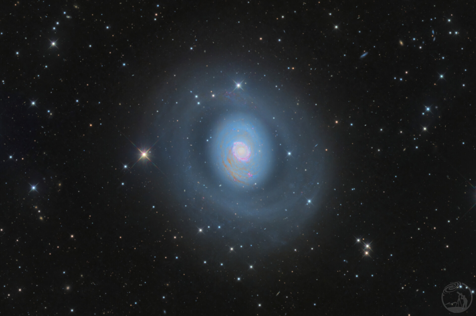 M94(梅西耶 94 / NGC 4736)位于猎犬座,是一个距离地球约 1600 万光年 的螺旋星系。它因其极其明亮的核心和独特的双环结构而闻名,外观像一只“眼睛”,故有“猫眼星系”的别称。