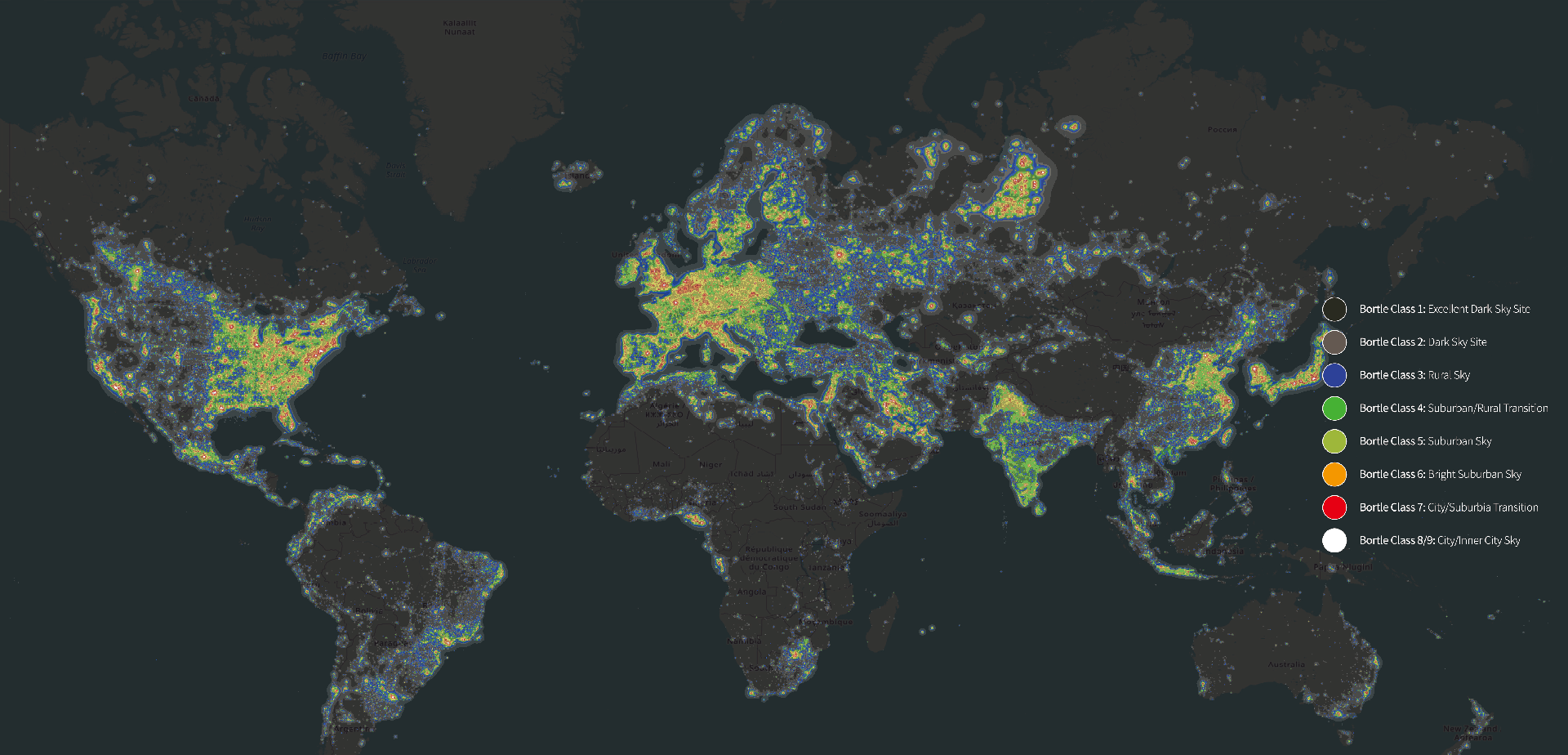 全球光害分布图
