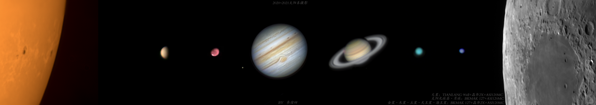 除日月外均使用了晶华2x巴洛镜。天王星、海王星后期裁剪出图(海王星拍摄、处理难度巨大,视直径小到被软件识别成噪点)