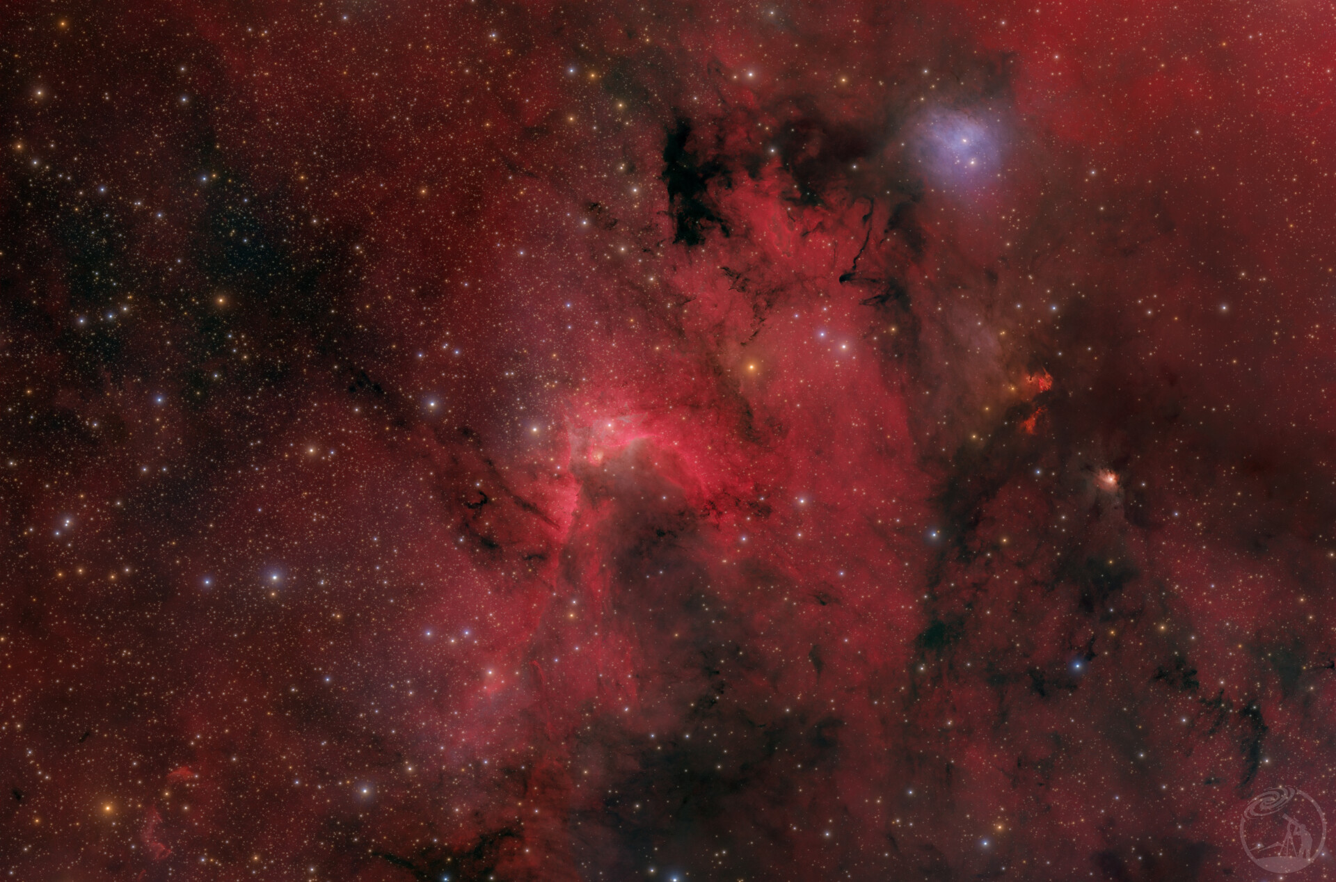 洞穴星云---宇宙大抹布。 臻选 拍摄地点: 智利天文台 镜头/望远镜: 天虎102apo pro 相机: 2600mm 赤道仪: GEM45 滤镜: 宇隆3nm 曝光时长: LRGB合计约40小时,Ha约8小时 天球定位图 评 论 星友评论