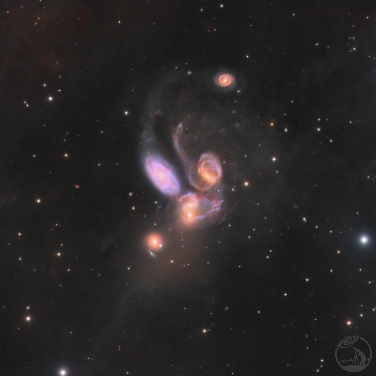 去年没入台就很想拍的一个目标,也是我拍摄星系的处女作(第一次拍完LRGBH通道+后期处理)前期所有亮场堆了57.1小时。这片天区的IFN比较容易出来但是Ha信号比较弱镜子也才F8,总体来说还是比较满意加上这次刚好有超新星爆发台子最近天气也给力