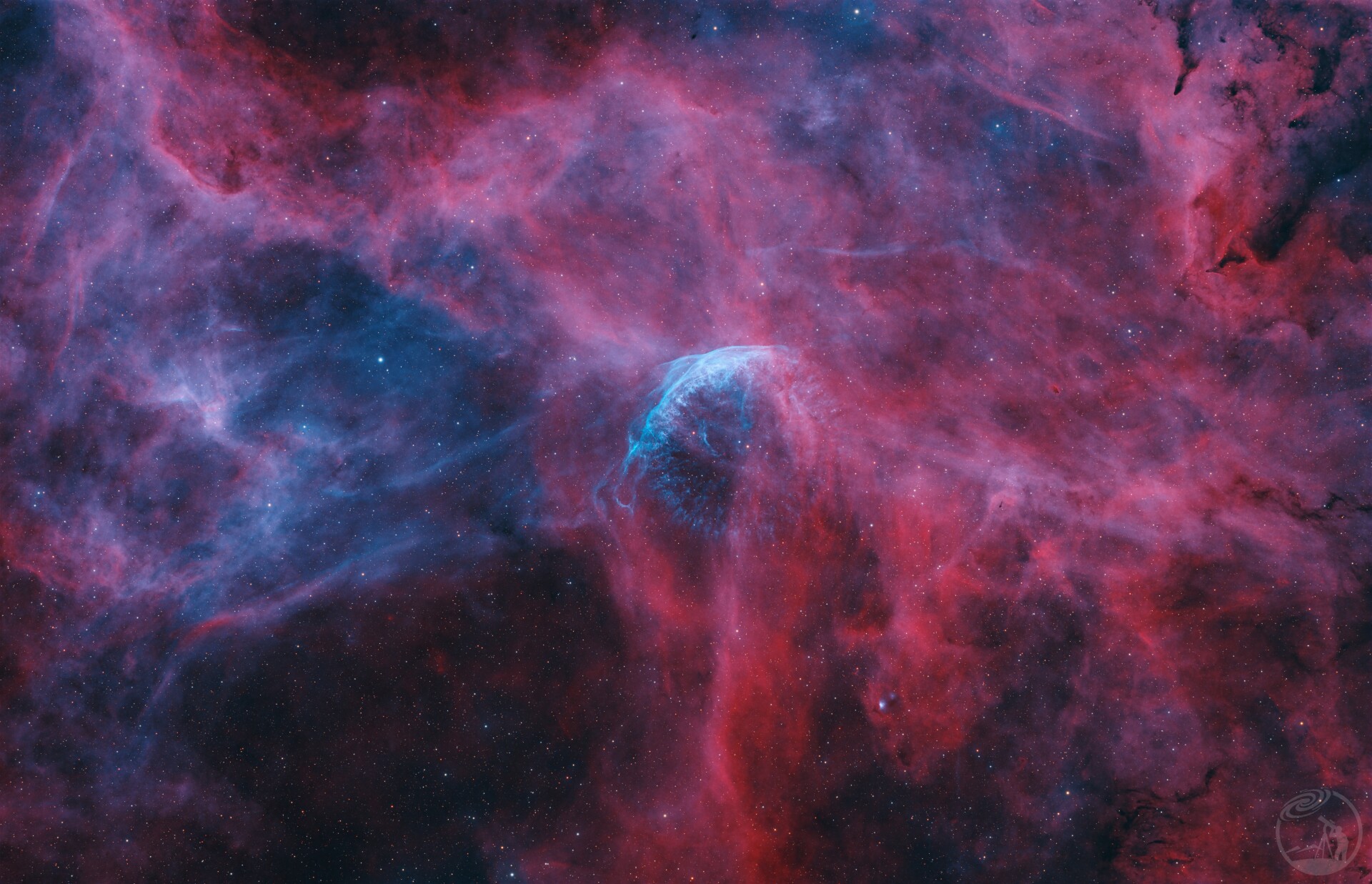 WR 134 是一颗位于天鹅座的沃尔夫-拉叶星。它是一颗大质量恒星演化到末期的产物,以极高的速度向外抛射物质,并发出强烈的紫外线辐射。这颗恒星本身的强烈星风以及与周围星际物质的相互作用,在其周围形成了一个弧状的星云气泡