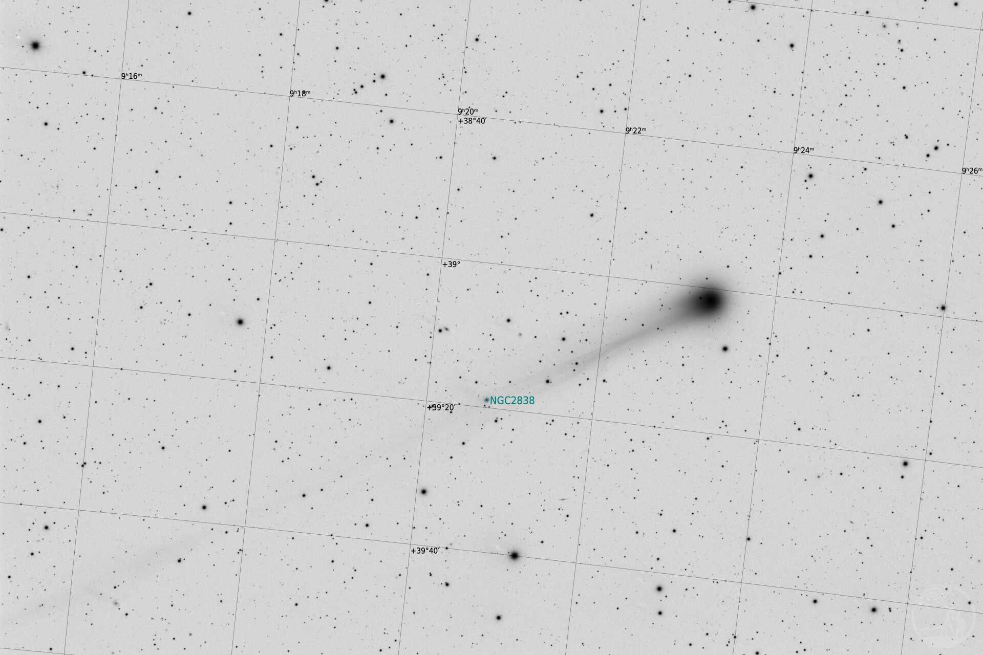 彗尾比上周长了好多,可见彗尾多个分叉,核心亮度也亮了不少