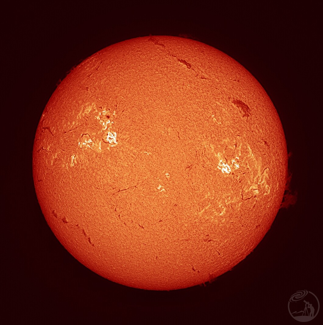 9月30日上午十一点一刻拍摄的色球层全日面。图像三点半方向的日珥,据同好说下午五点半炸成了超大日珥,可惜天气不行没赶上。