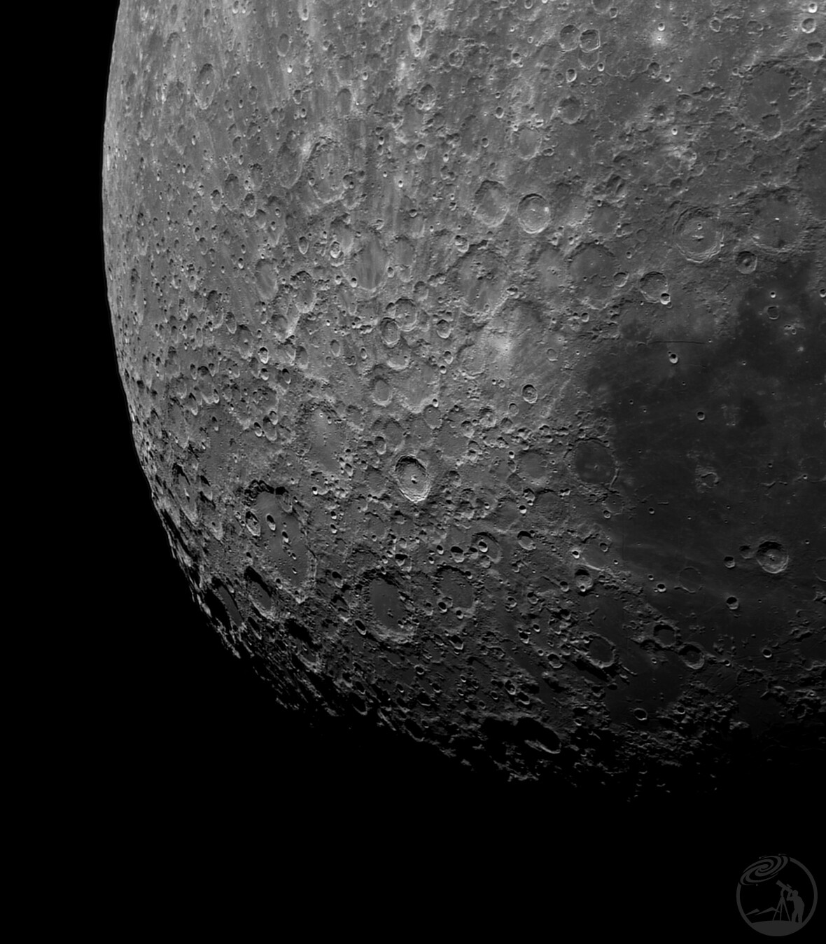 这幅月球摄影作品聚焦于月球正面最醒目的地标——第谷陨石坑。直径85公里的环形山在阳光下宛如一只深邃的“月之瞳”,中央峰高耸如瞳孔,辐射纹如星芒般向四周迸射,覆盖月面千余公里,形成一幅跨越时空的宇宙图景。