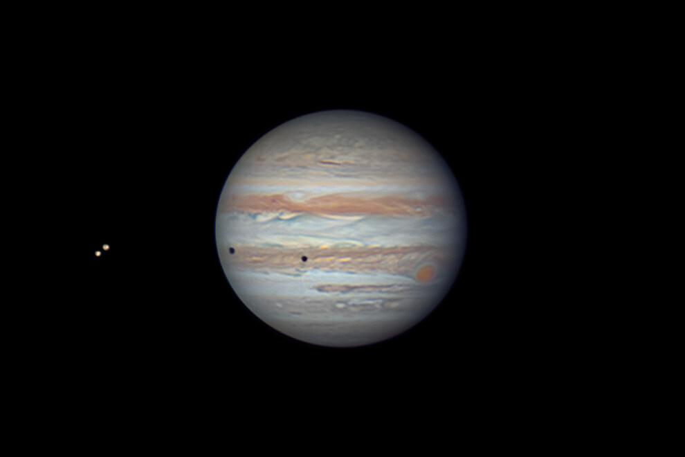 木卫一和木卫二影凌木星。 精选 拍摄地点: 长宁区地铁10号线,地铁3号线,地铁4号线外圈 上海市长宁区 镜头/望远镜: C11hd 相机: Zwo asi715mc 赤道仪: EM31pro 评 论 星友评论