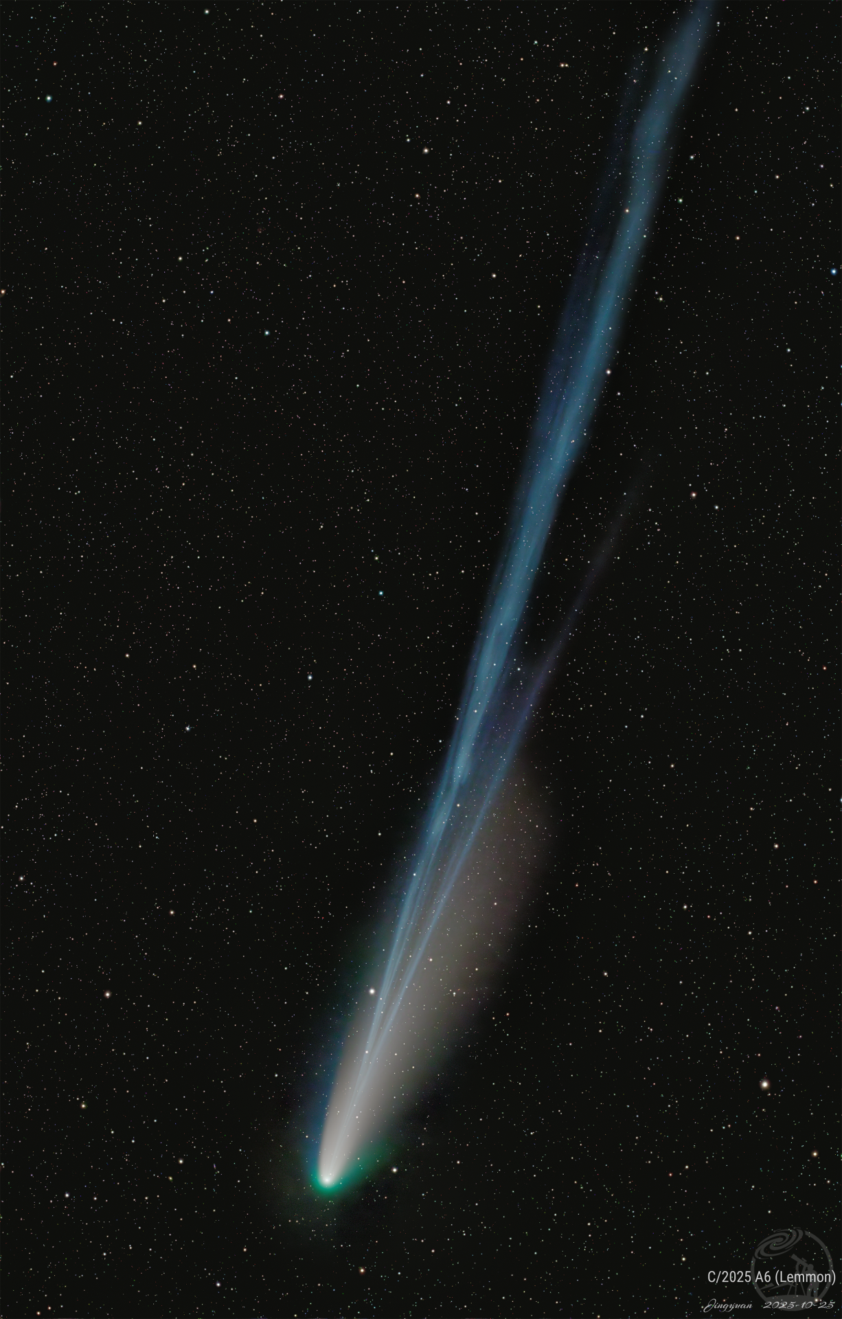 天黑后莱蒙彗星的拍摄窗口比较短。赶在天文昏影结束前紧张地调试设备,从北极星可见到能在NINA里对焦、TPPA对极轴、PHD2导星校准,时间挺紧张的。长途奔袭出摊儿最怕漏带设备或者设备出问题,为保万全,日落时分已经把设备架好并通电连接确认无误。不出意外,意外还是出现了。在TPPA对极轴时,赤道仪转过一个角度就不响应了。NINA界面在无响应个把分钟之后弹出错误信息提示和赤道仪通信失败。赶紧重置赤道仪、重新插拔赤道仪数据线,重新跑TPPA,问题依旧!瞬间万念俱灰......再尝试了一次仍旧失败后,心里已经准备接受白跑一趟的现实,考虑收摊儿。又看了眼错误信息,冷静了一下,想到也许可以换根数据线试试。好在包里总是有些冗余备份,替换掉赤道仪原带的数据线再次重试,好了!然而时间一分一秒过去,本计划18:55开始拍摄,转眼时间已经19:10多了。看到第一帧数据的时候心里总算踏实下来,终究没有白跑。在明安图观测基地,彗星落下的角度接近正镶白旗方向,低空有比较明显的光污染,因此只选19:45之前的数据,总积累时长半小时。