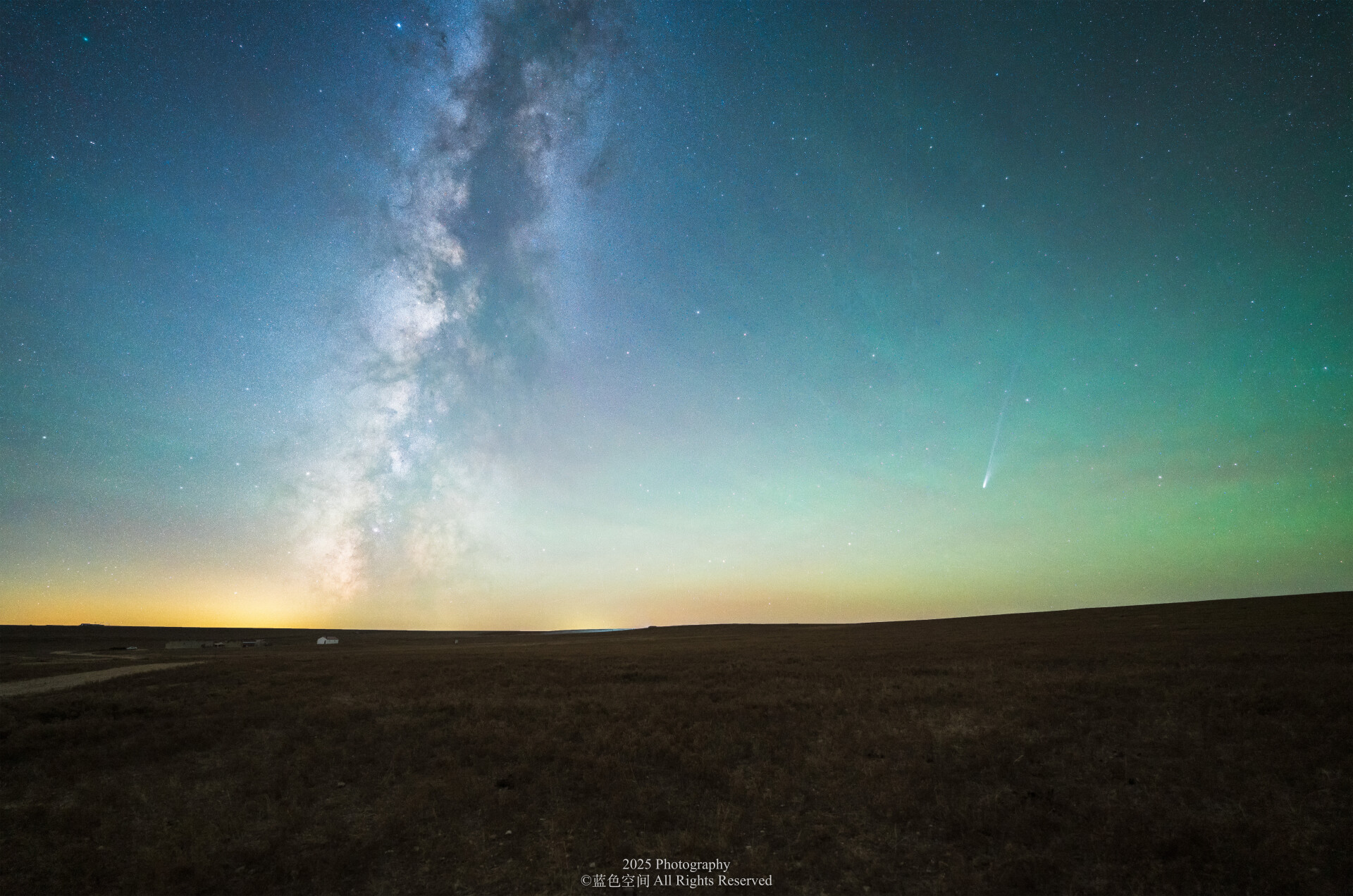 1300年,于人类是漫长的历史轮回,于宇宙只是彗星的一次呼吸。我飞越半个中国,去最极致的暗夜守候C/2025 A6彗星。它披着千年前唐朝的星光而来,再次点亮夜空。在内蒙古无垠的荒原上,我定格下永恒的银河系与彗星的一瞬。大地沉默无言,唯有时间的低吟。