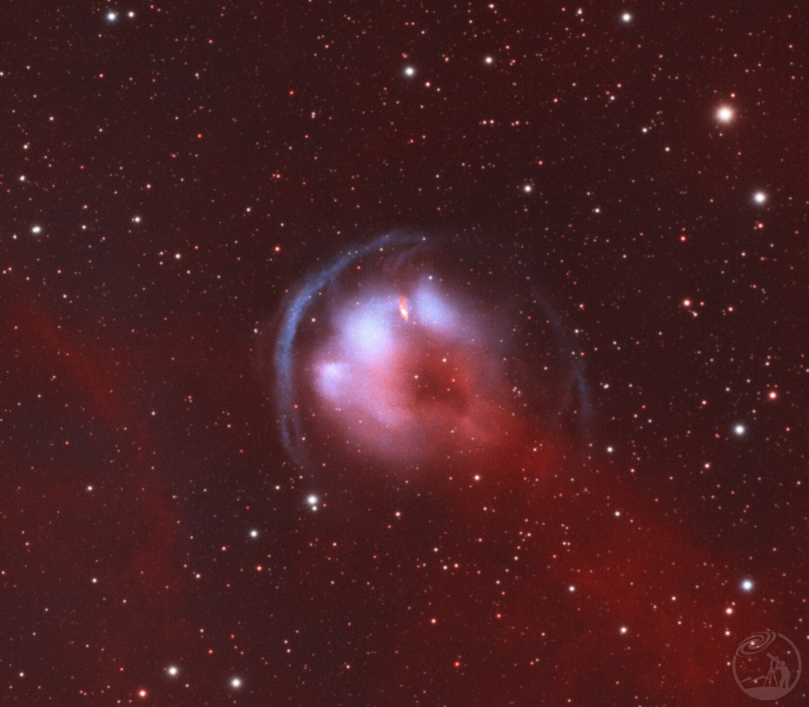Abell6是一个老的行星状星云,原本是一个大致球形的外壳,但由于其中心星在星际介质中运动,或者其本身抛射物质的不对称性,导致了其中一部分(形成“脚趾”的那一侧)被压缩或激发得更明亮,而其他部分则过于暗弱而难以被拍摄到。我们看到的“猫爪”,其实是这个三维天体在一个二维平面上最明亮、最突出的一个侧面投影。