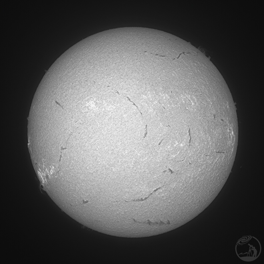 冬天的晴日拍一次太阳太不容易了。角度低,视宁差,天朦胧,光度弱,特别又是在大城市周边高层楼环境里,几乎看不到蓝色的天空,只能在淡云的天空偶尔闪过浅灰蓝色的背景,比起夏日头顶蔚蓝天空中直射的太阳,清晰度是差多了。得益于Acuter40日珥镜优异的品质,总算在众多凑数的图像当中,发现了清晰度最佳的一幅,终于满足了一回!
