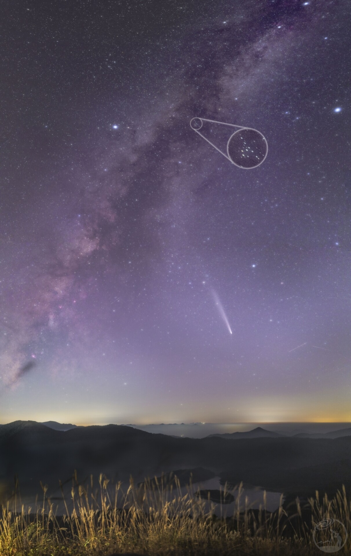 P3放大部分可以看到它在银河系中的位置(摄于浙西天池赖利尖)