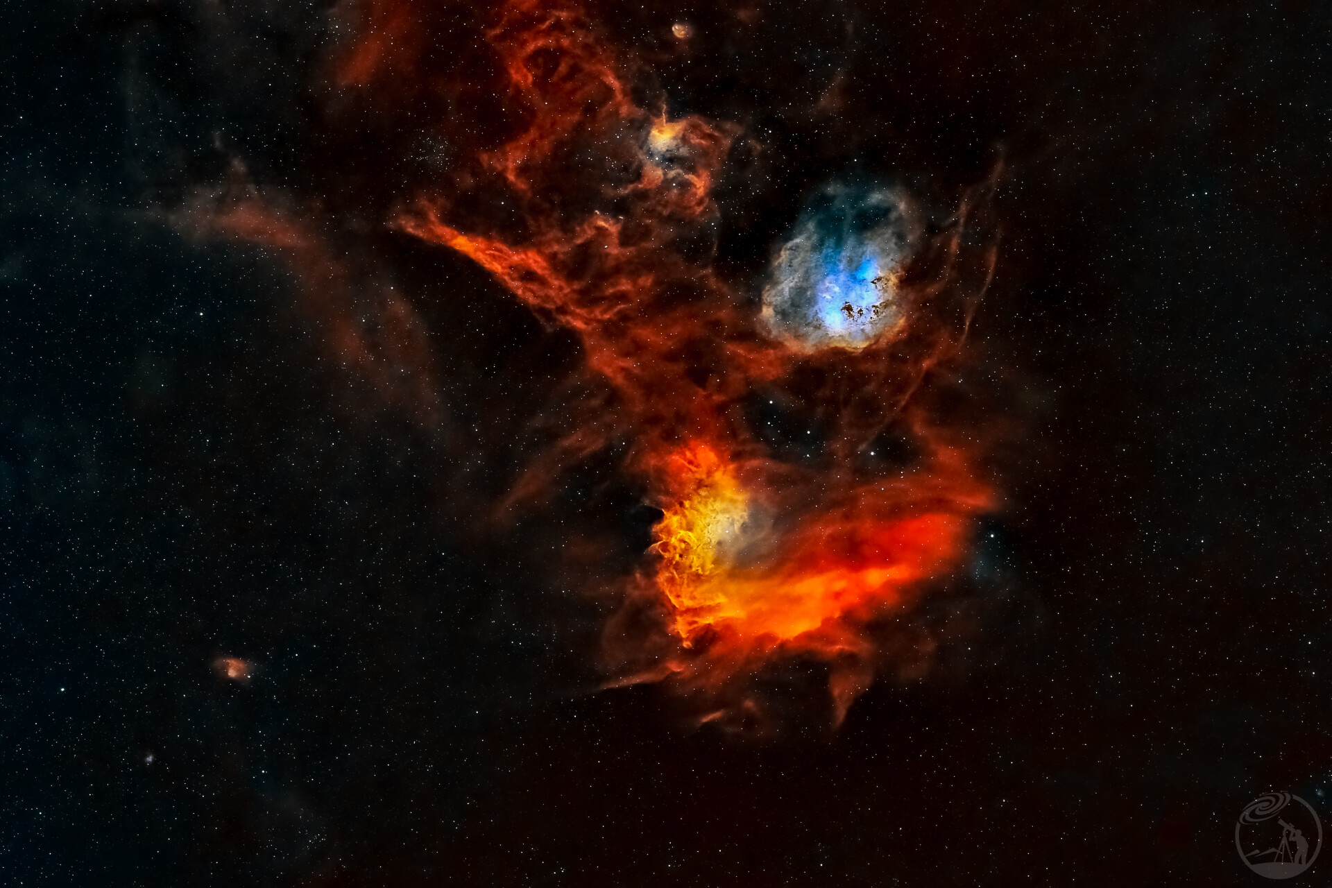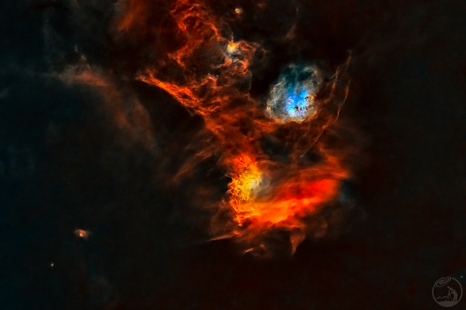 新目标 IC405广域,本来周六已经拍了,但是照片像素出了问题,今晚极品天气,重新拍摄一次,结果构图出了问题,只能裁切,还好星云主体拍到了。图一图二伪哈勃色调色,图三图四正常调色。