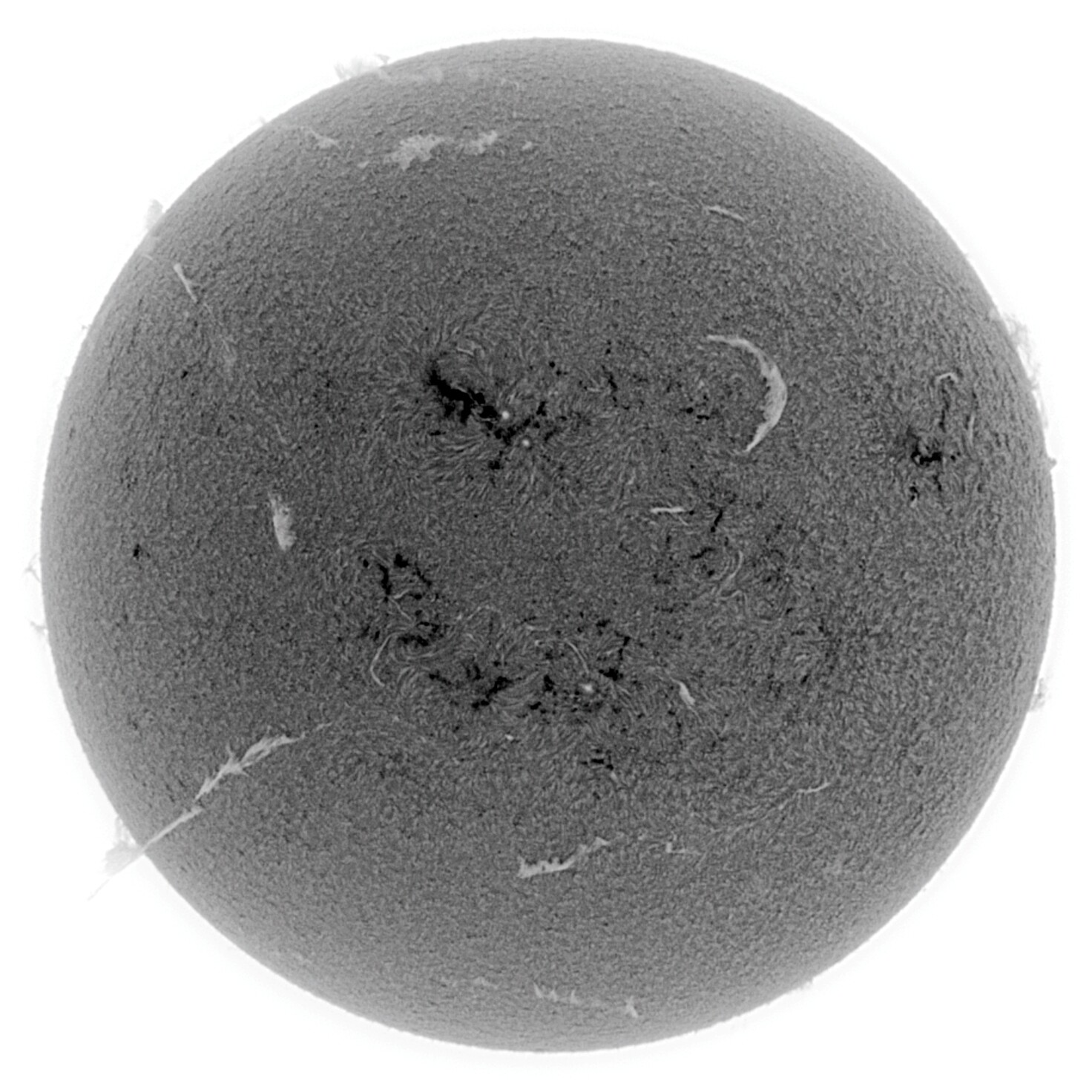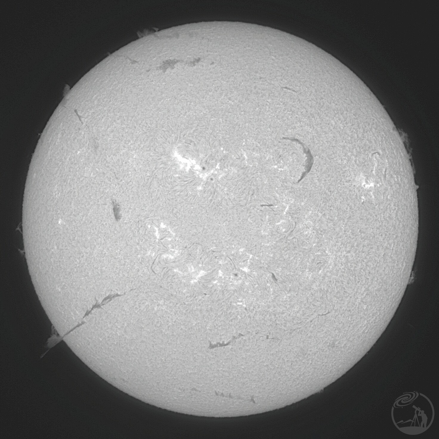 左下方拍摄显示的日珥,视觉的角度看刚好显示成一直线,就像冲天的避雷针。