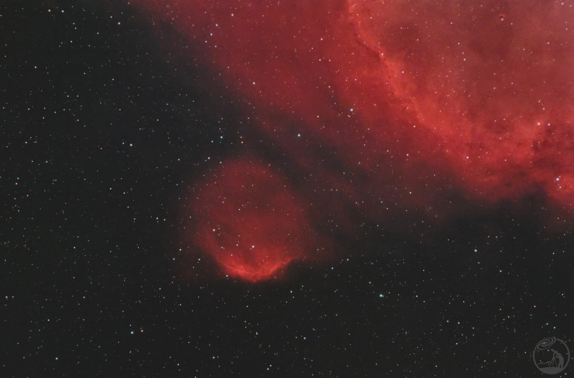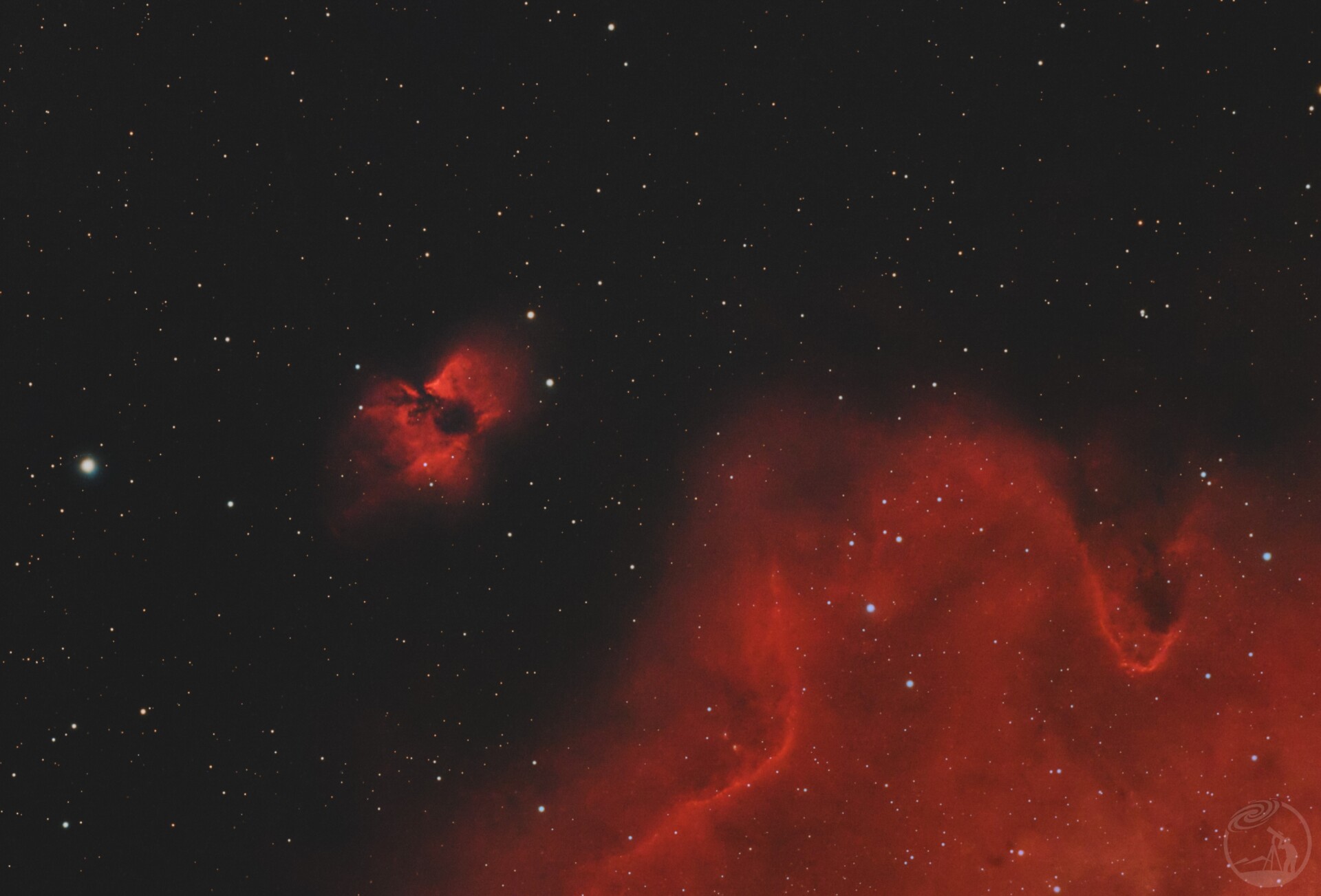 灵魂星云IC1848(或SH2-199)是位于仙后座的发射星云,距离地球约6500光年,这是一个相当大的HII区域,星云直径约100光年,内部的恒星形成活动发出了氢H-alpha发射线的典型红光。灵魂星云是爱好者经常拍摄的一个目标,灵魂星云旁边还有两个小的发射星云SH2-198&SH2-201,这两个星云爱好者拍摄相对较少,今年这次长三角星空大会又是好天气,晚上在停车场架好设备,拍摄了这两个目标。