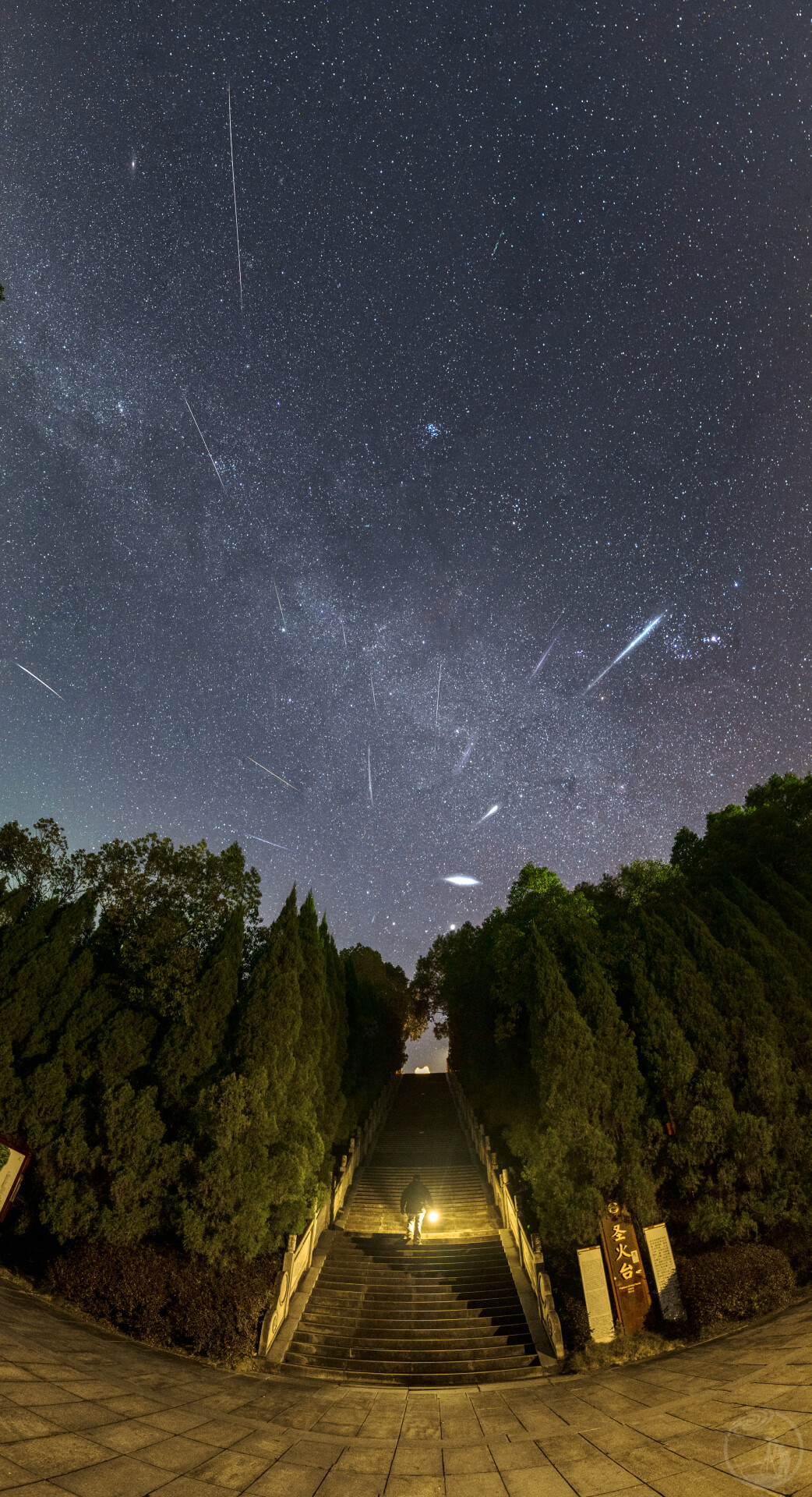 夜里走进炎帝陵,圣火台就立在石阶尽头,这方承载着祭祀炎帝点火仪式的圣地,此刻被星空拥裹。今夜宇宙的烟火将在此盛放,我一步步踏上阶梯,朝着圣火台走去,赴一场星河与华夏文脉的相逢。