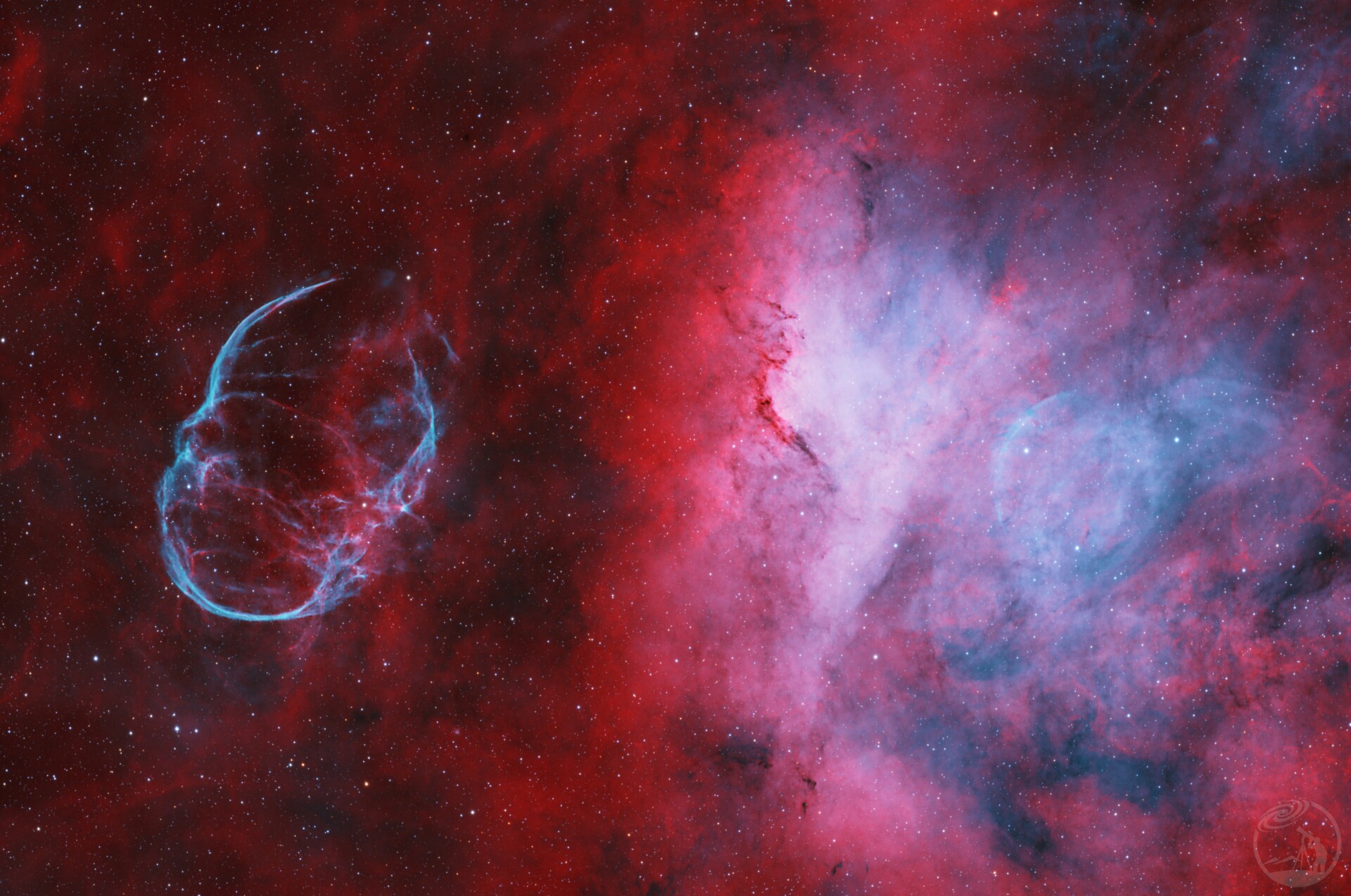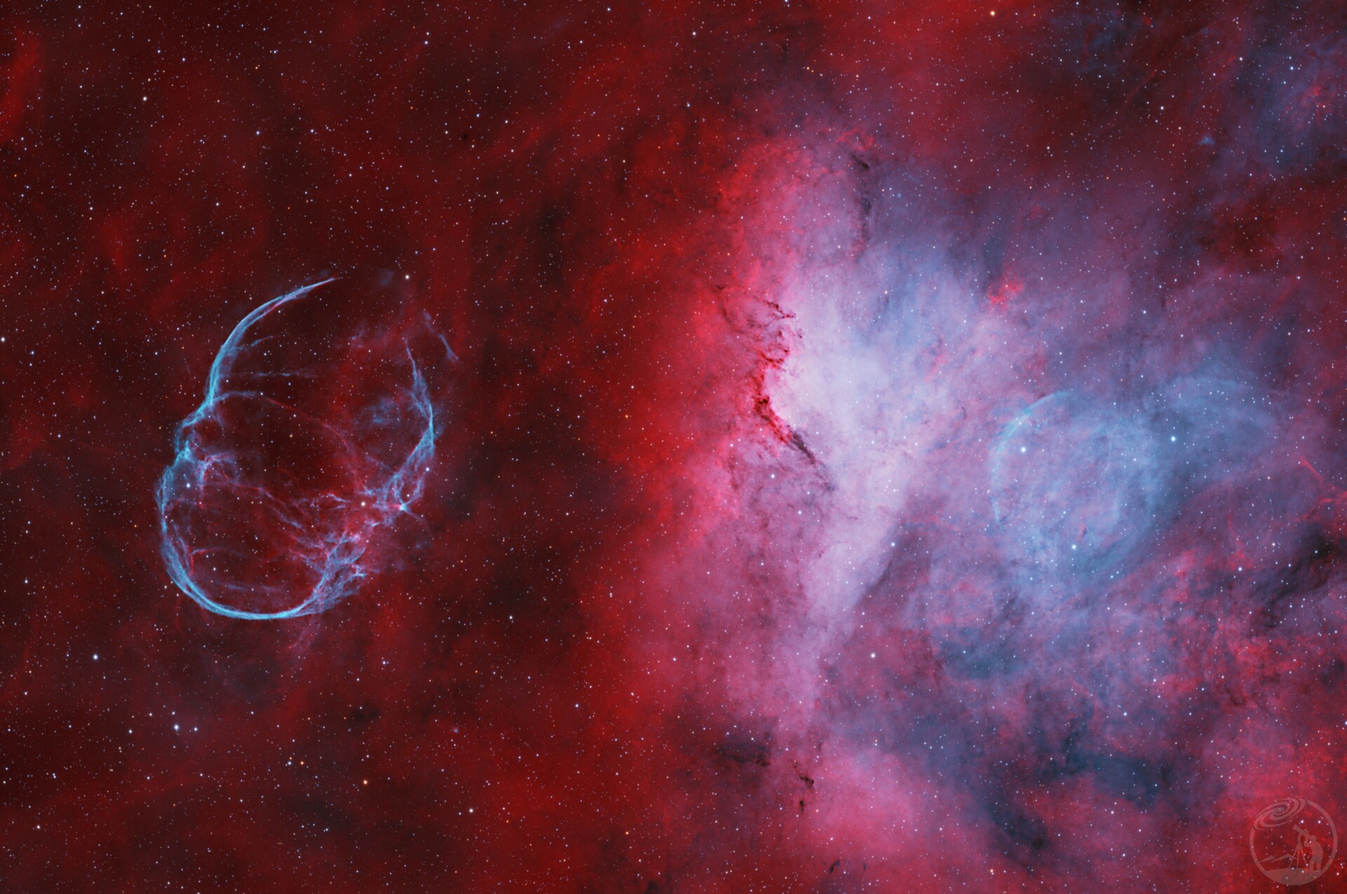位于麒麟座的一处超小众超新星遗迹,一开始从我的目录里给小伙伴们推荐这个目标,觉得大众化目标已经审美疲劳,要敢于探索和挑战。小伙伴一眼就相中了这个目标。我原本给他命名为“水熊虫星云”,不过“吃货”小伙伴们觉得这片超新星遗迹形态也酷似炸蚕蛹,那么发图就冠名为“蚕蛹星云”。右侧的Oiii泡也有点类似WR134,至于是不是存在一颗沃尔夫拉叶星还没仔细研究,待考证后补全信息(经考证不存在沃尔夫拉叶星,是一处自发形成的Oiii泡状结构)。