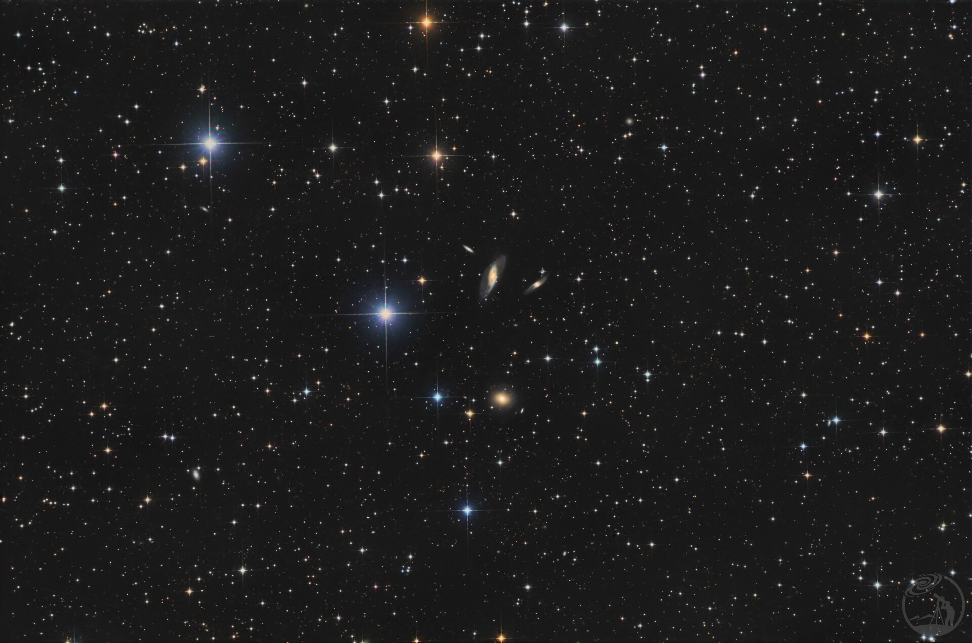 Hickson 10是仙女座内的致密星系群,隶属希克森星系群表。它由NGC 529、NGC 531、NGC 536和NGC 542四个星系组成,其中NGC 536为明亮螺旋星系,其余多为透镜星系。该星系群亮度偏暗,且邻近6等亮星,观测难度较大,成员星系间的引力相互作用也为星系演化研究提供了重要样本。