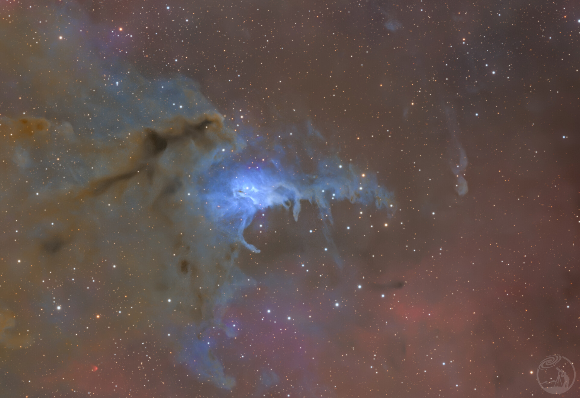 有点意思的一个目标,ngc225是仙后座的疏散星团,一般称为“帆船星团”。周边的星云看起来有点像像蓝色梭子蟹,外围的发射星云环绕,于是有了这个命名