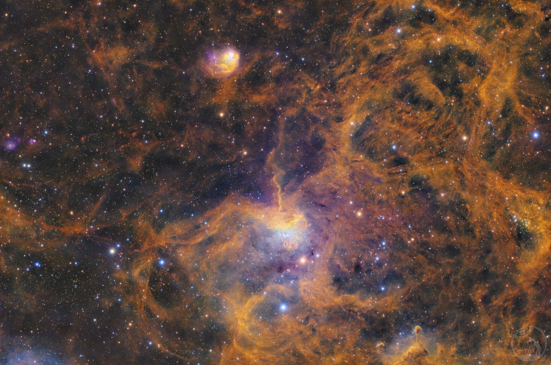 御夫座蜘蛛星云SHO+LRGB星点,LRGB比RGB的星点的深度更深,同时也增加了一定的后期难度,但是效果是显而易见的。