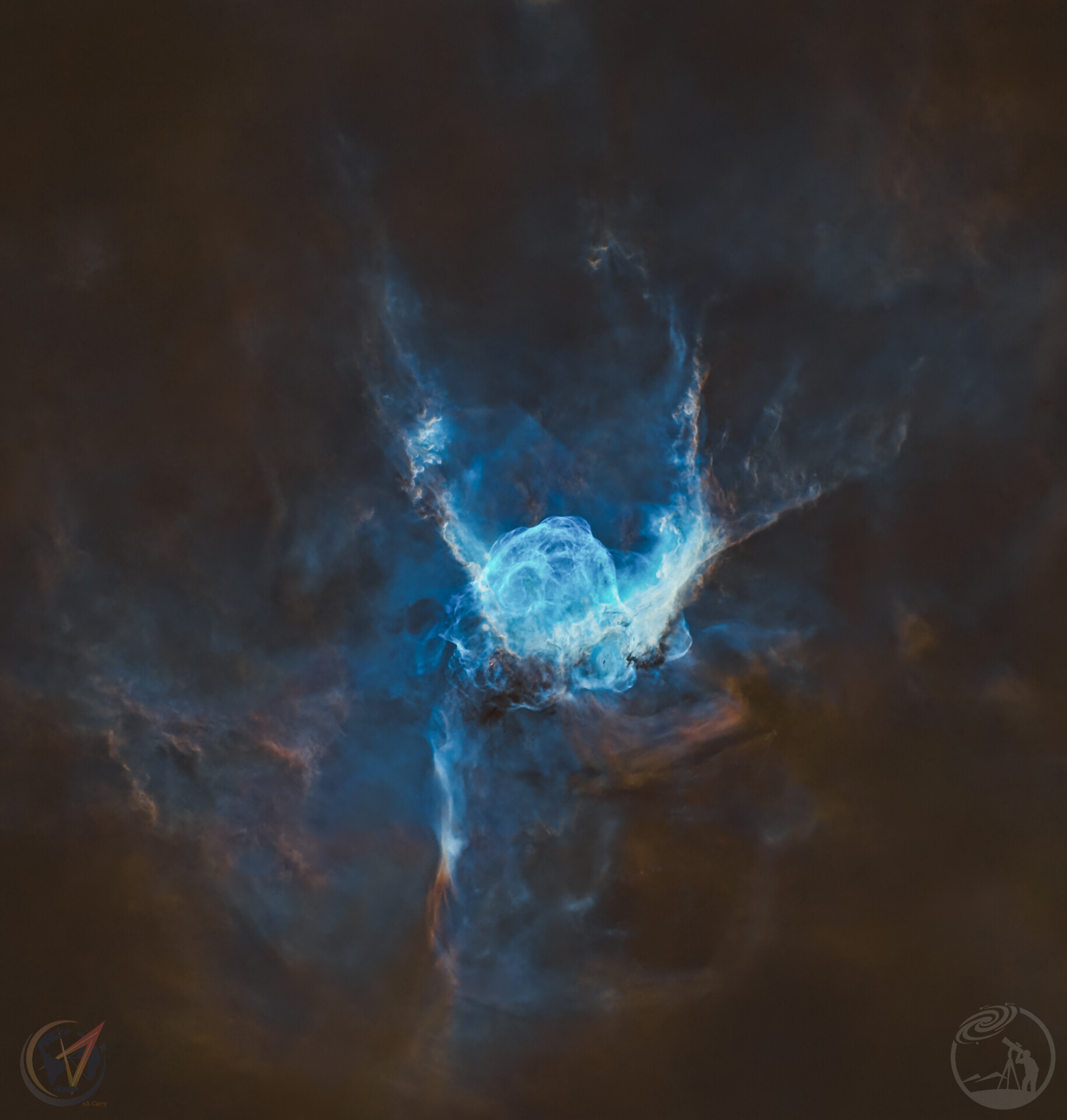 去星后强烈的明暗冲击,使这个星云宛如叱咤奔腾的蓝色闪电,万钧之力一瞬崩裂,怒吼着点燃这片死寂沉重的尘埃之海。