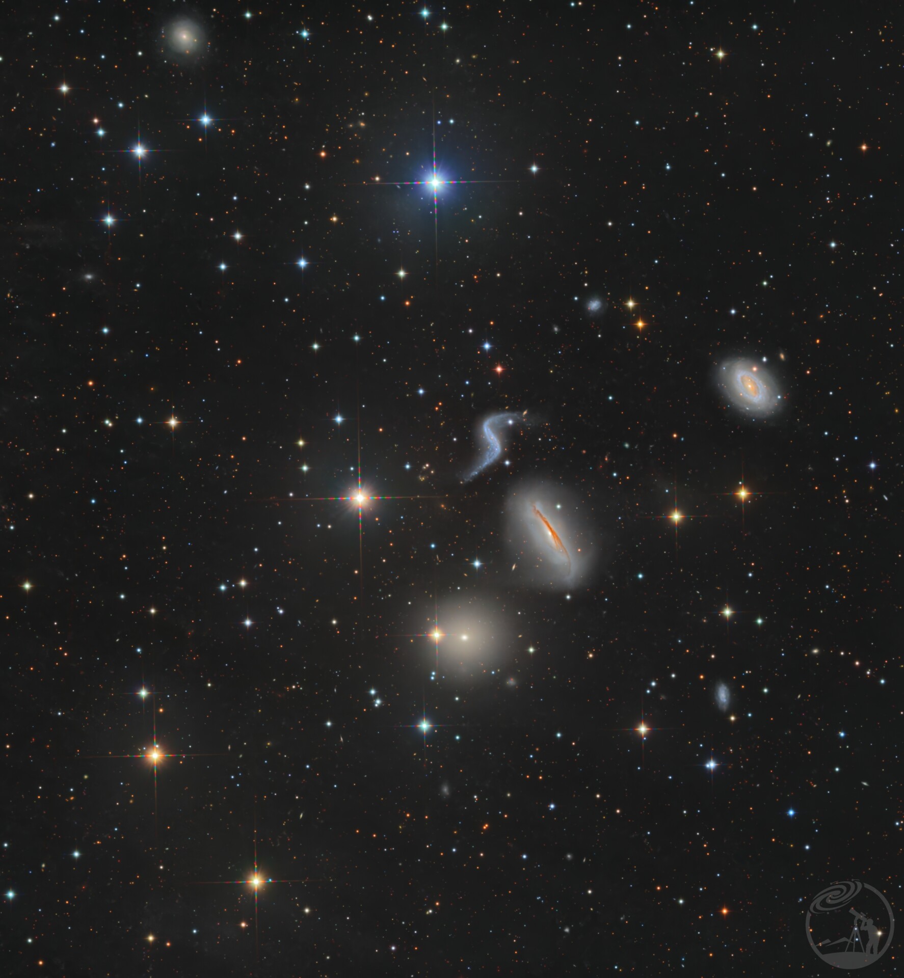 这个星系群是研究星系碰撞与演化的绝佳样本,因为其中的成员星系正在经历引力拉扯,未来可能会合并成一个巨大的椭圆星系。