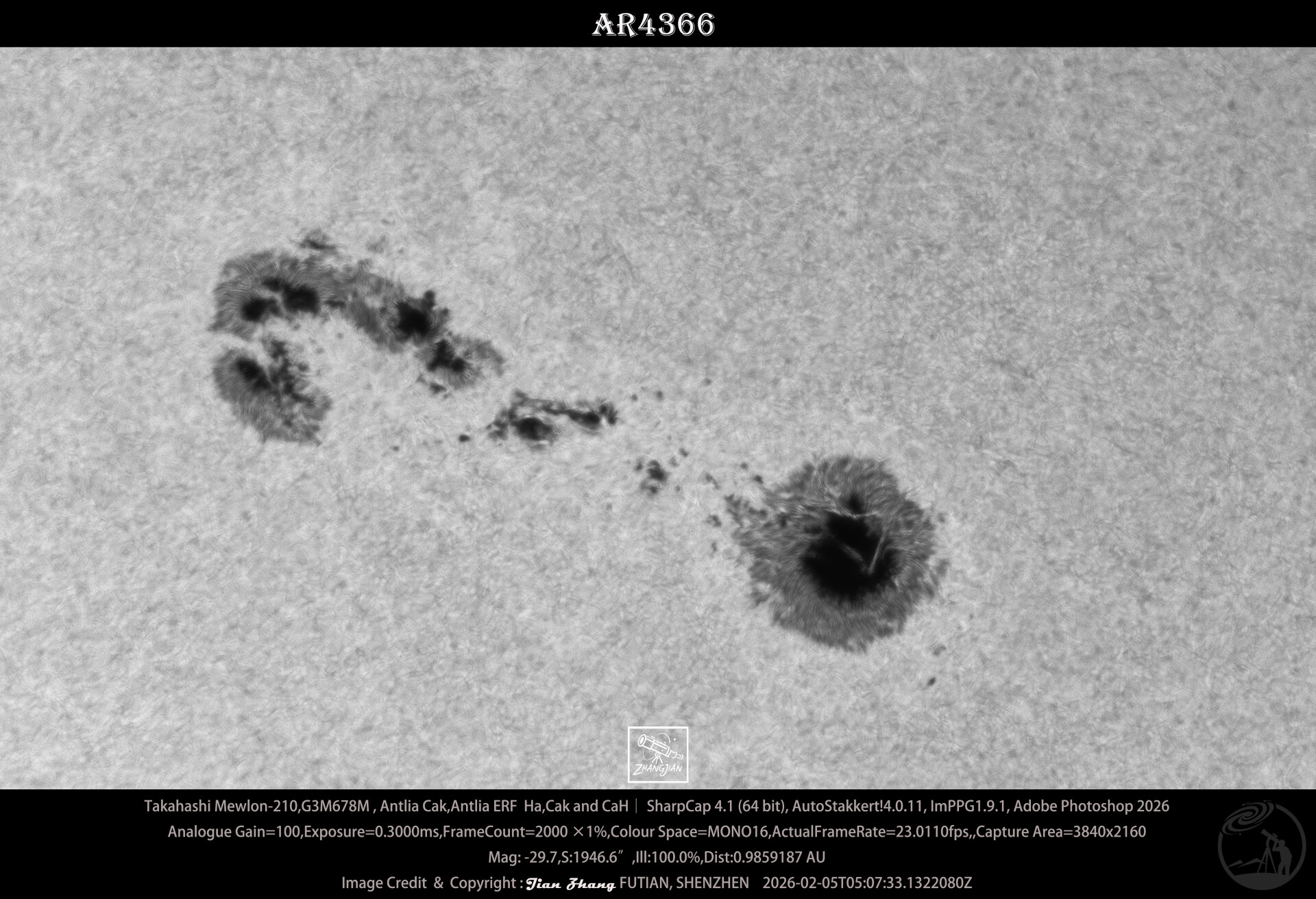很久没拍这么大的黑子群了,真是壮观 精选 拍摄地点: 广东省深圳市福田区 华强南 镜头/望远镜: Takahashi Mewlon 210 相机: 678 赤道仪: 彩虹RST300 滤镜: Antlia 双通道ERF 评 论 星友评论