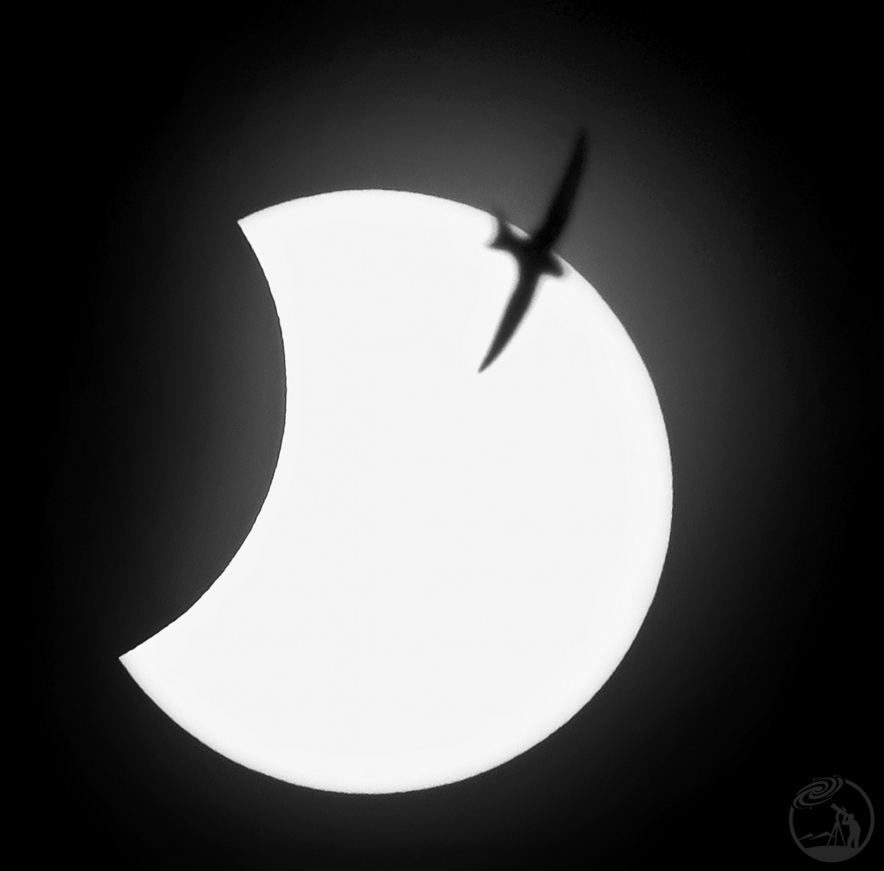 拍摄背景:2020年6月21日,拍摄地点北京慈寿寺塔。慈寿寺塔上有燕窝,日偏食期间,或许燕子们感到了异常,成群的在天空飞翔,有只燕子恰巧闯进了镜头,给单调的日偏食景象赋予了灵性。