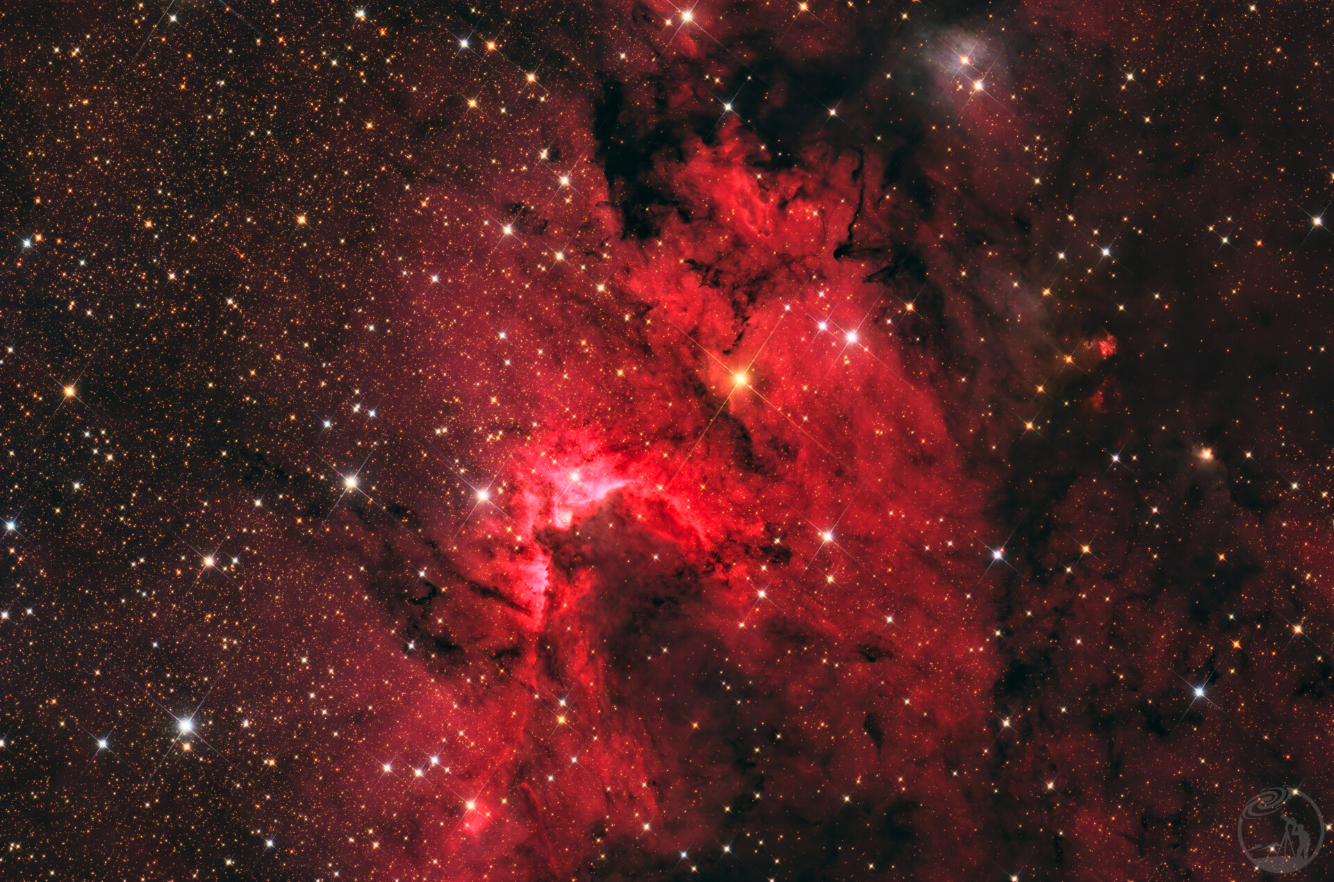 Sh2-155洞穴星云是位于仙王座的一个恒星形成区。它实质上是巨大分子云边缘被年轻恒星照亮的一部分,因其明亮的气体壁围成类似洞穴的弧形结构而得名。这个星云距离地球约2400至2500光年,跨度大约10到50光年,是一个包含发射、反射和暗星云的复杂天体。