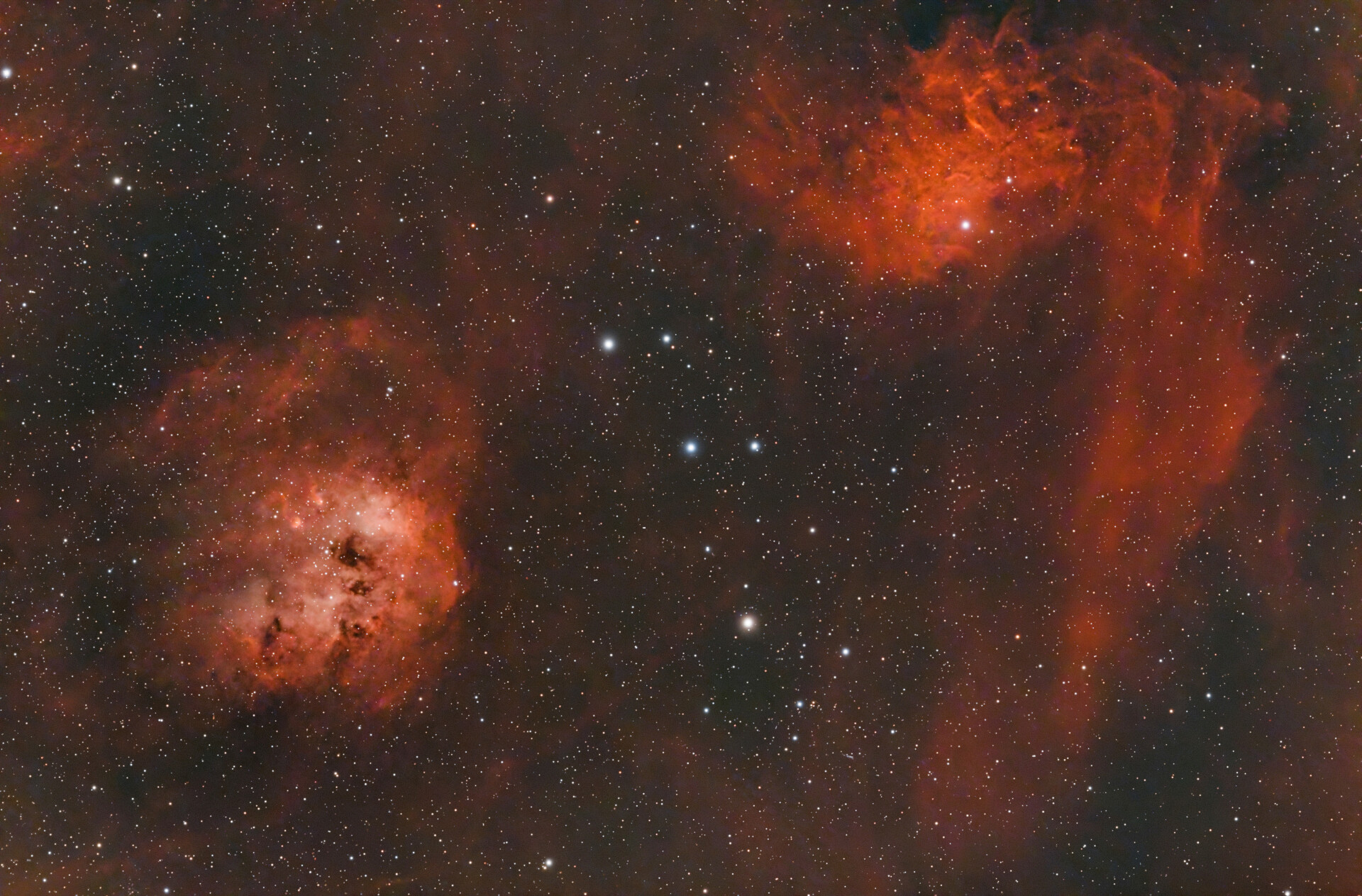 过年前家门口拍的,400多的焦距正好能把两个星云都拍进去,拍摄时间比较短