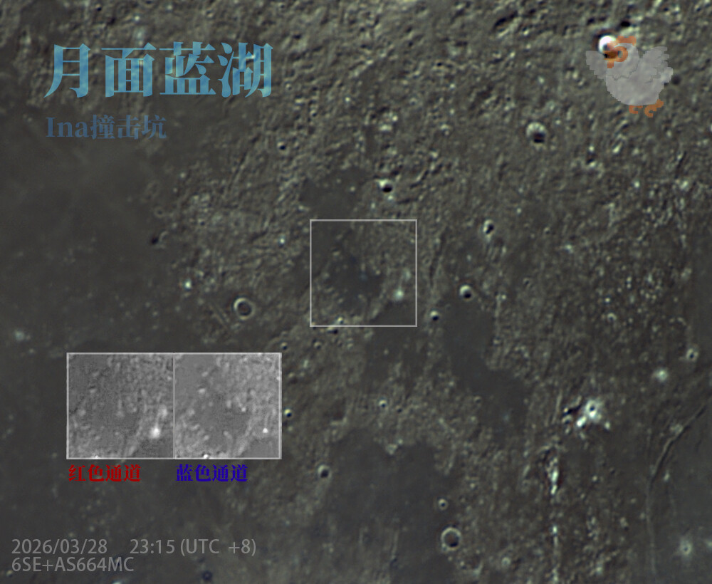 月球上一个很小的陨石坑,直径2.9km,在望远镜中看貌似是灰蓝色的,增强了图像通道更加明显