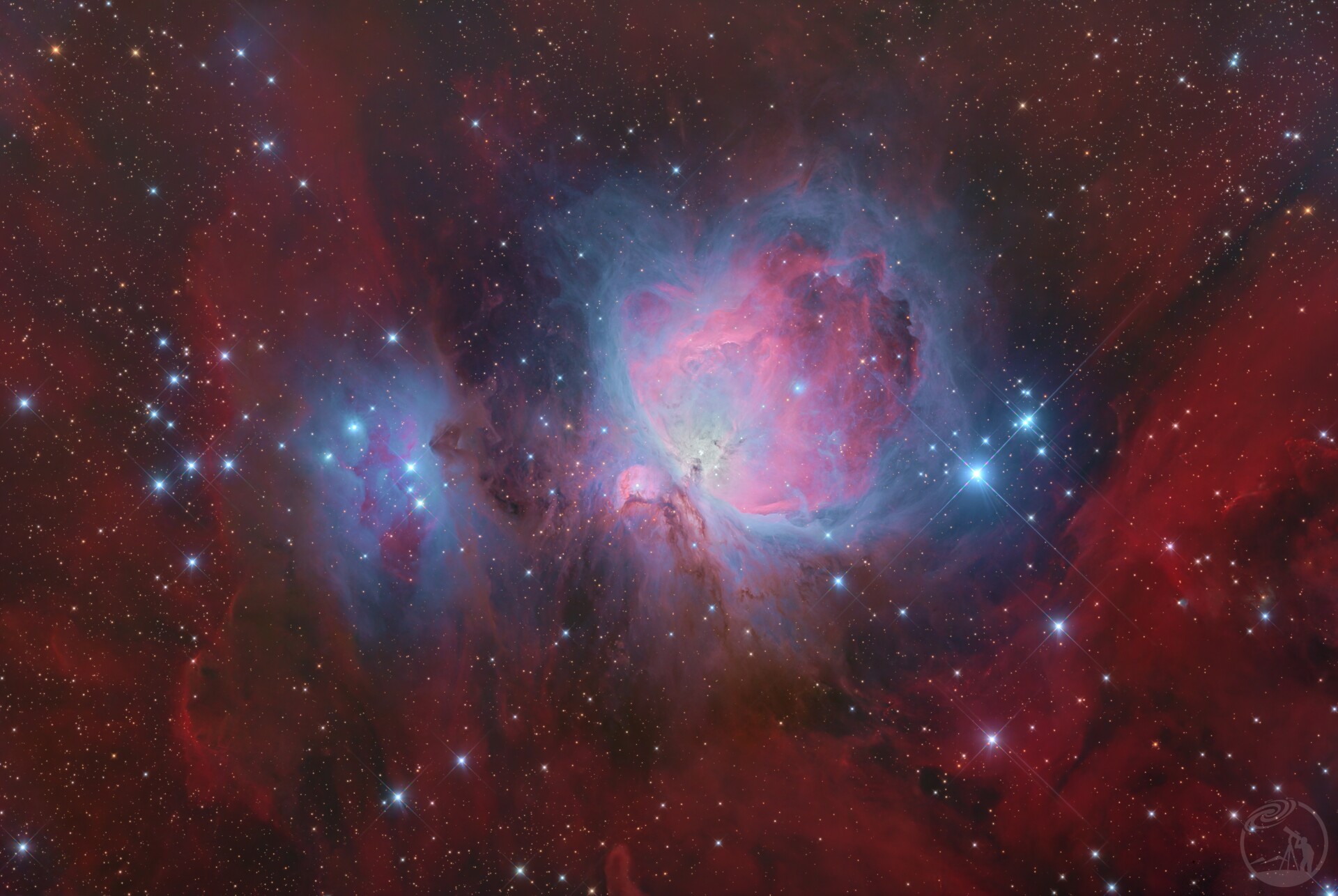 本幅作品呈现了位于银河系猎户臂上的著名深空天体——M42猎户座大星云。作为距离地球最近且质量最大的恒星诞生区之一,该星云在画面中央展现出极具张力的气体结构与恒星分布。