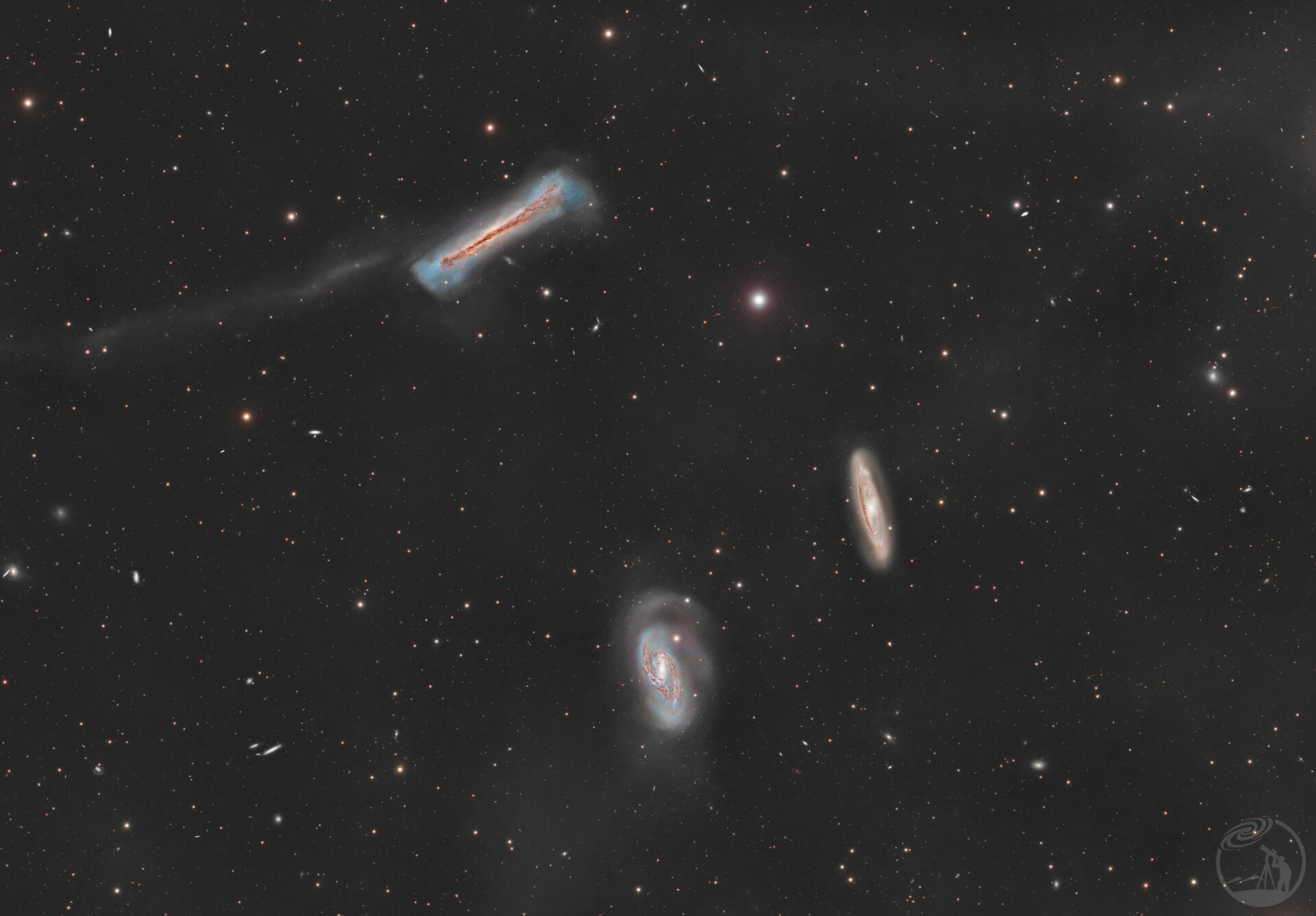本作品展示了位于狮子座方向的著名深空天体群“狮子座三重奏”(Leo Triplet),主要包含Messier 65 (M65)、Messier 66 (M66) 以及NGC 3628三个星系。