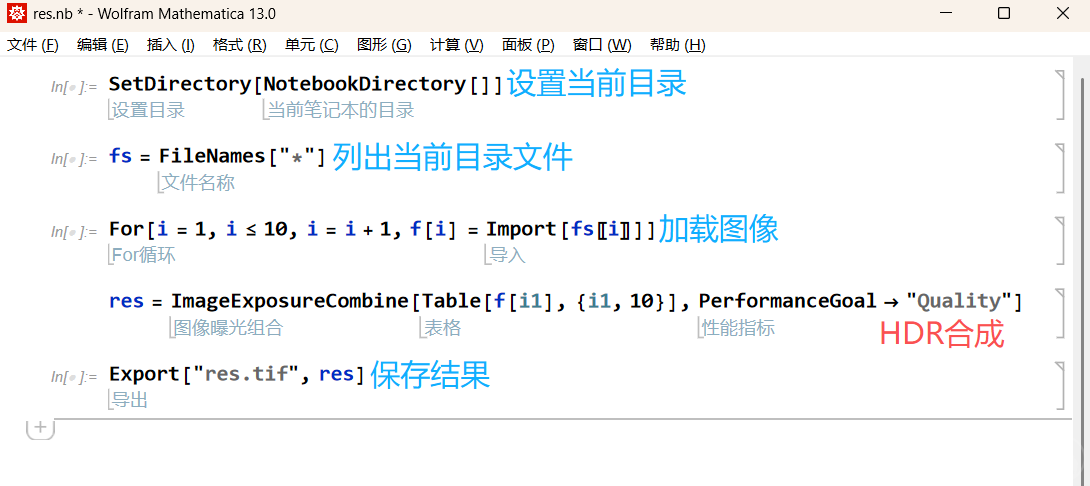 8、按shift+enter依次运行代码,即可输出HDR后的文件res.tif;