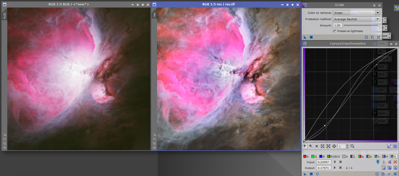 10、对res.tif去绿,并调曲线,然后就是见证奇迹的时刻!!!