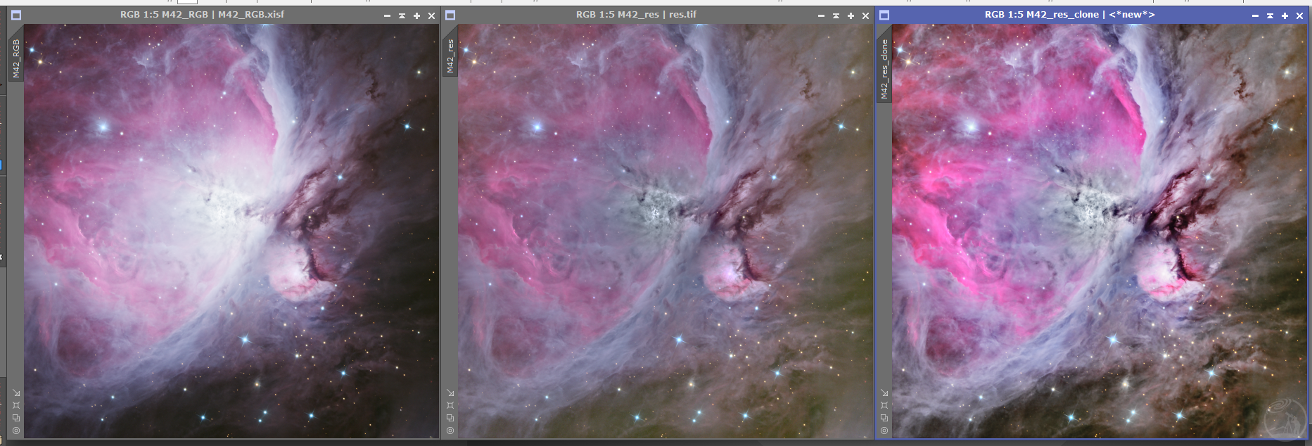 本文采用RGB各一小时的M42素材作为示例。对素材进行RGB合成,STF,BXT,NXT,拉伸后去星