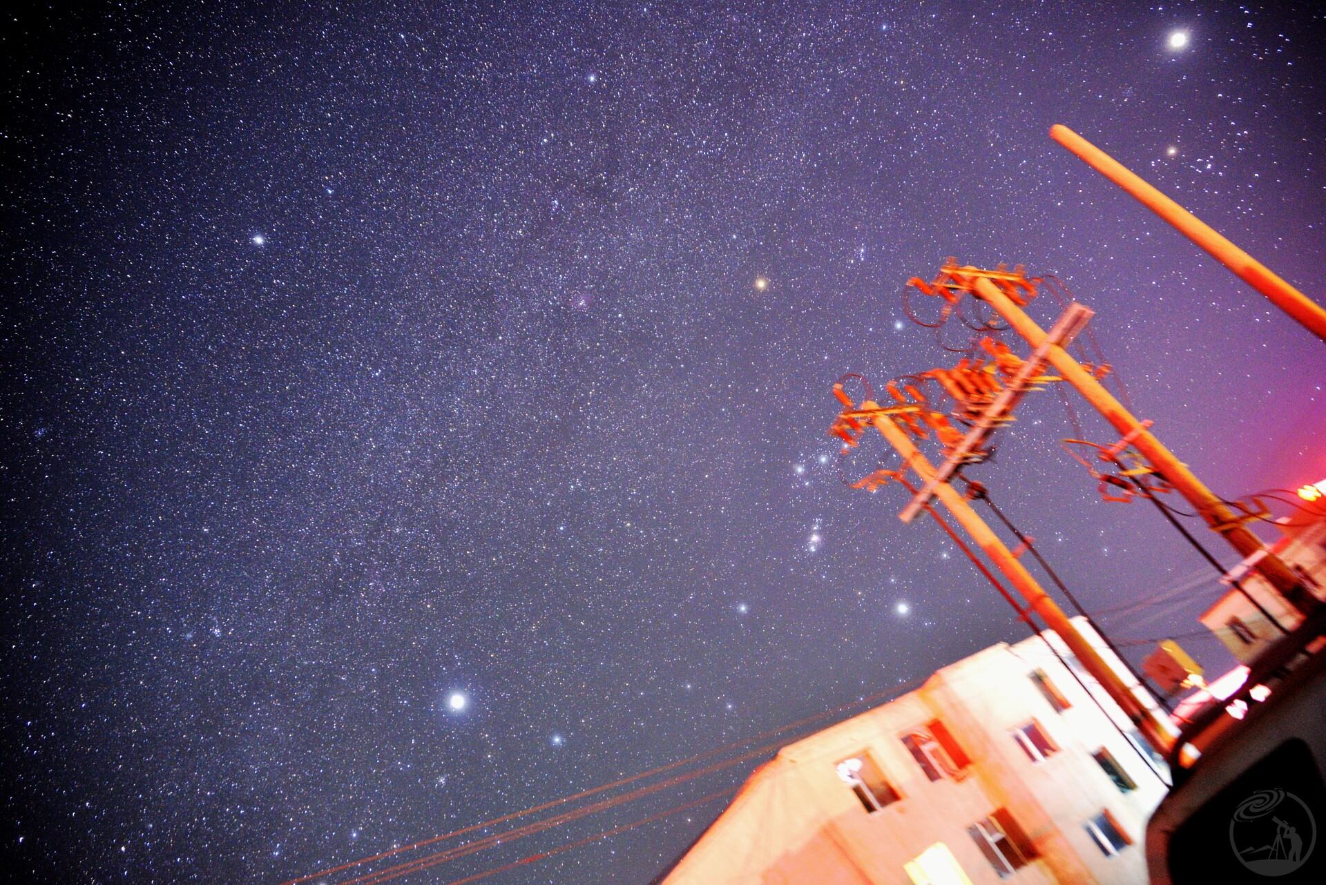 深空小白买来相机第一次在大西北出摊开光,2-3级实际4级的环境,肉眼可见m42 m45,可惜零下十几度的天气实在太冷,在酒店停车场提前收工,由于极轴不太准,导入Siril无法自动对齐叠加,均为单张