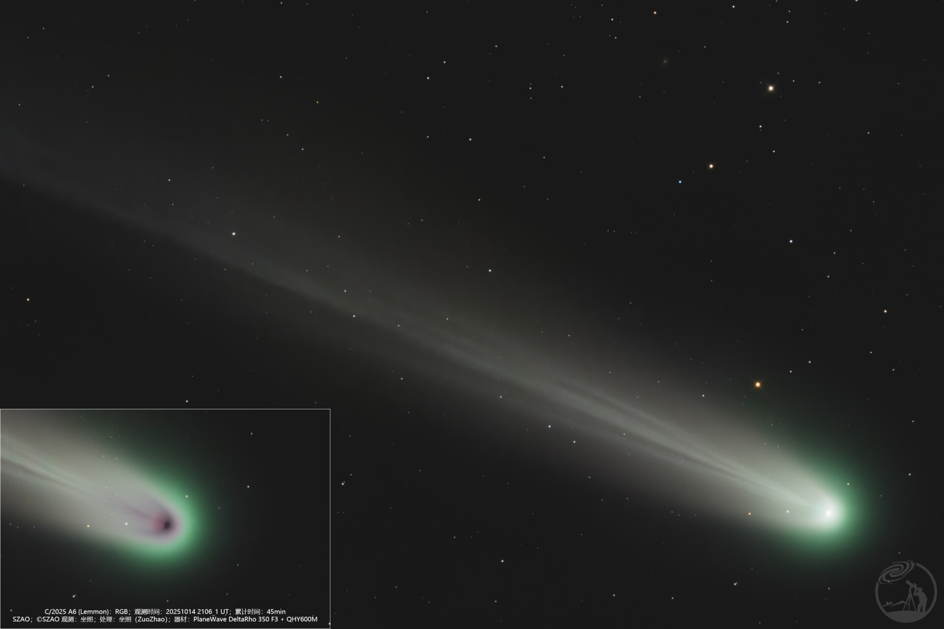 10月15日凌晨拍摄的C/2025 A6彗星十分的暗淡,叠加后发现是断尾了,尾巴残缺不全。随着高度角接近地平线,深圳地区的观测基本结束了。 拍摄地点: 深圳 镜头/望远镜: PW350F3 相机: QHY600M 评 论 星友评论