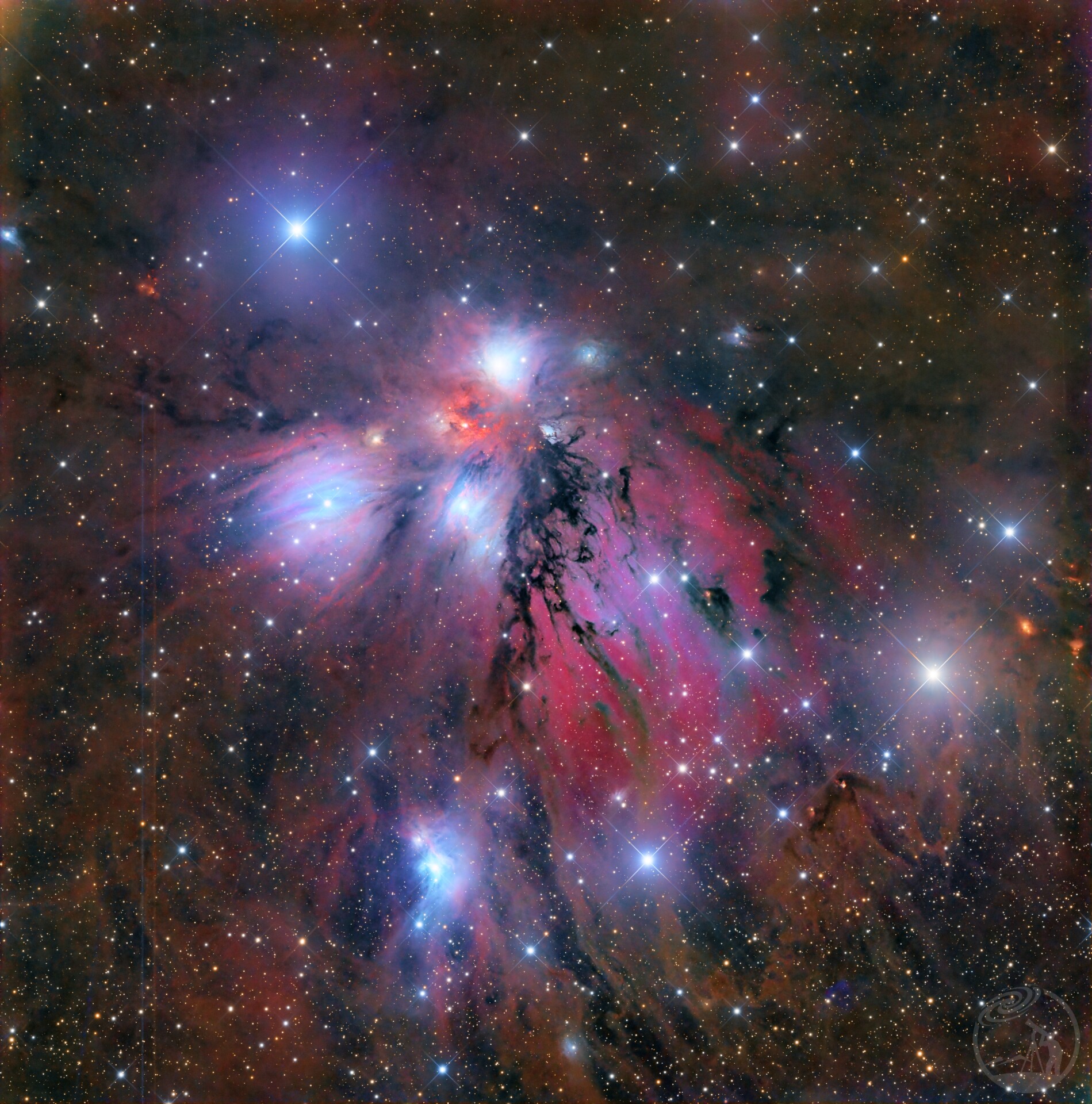 NGC2170_天使星云, 距离地球约 2,400 光年,属于Monoceros R2分子云复合体的一部分,位于银河系猎户座旋臂上。是位于麒麟座的一个复杂星际云区域,